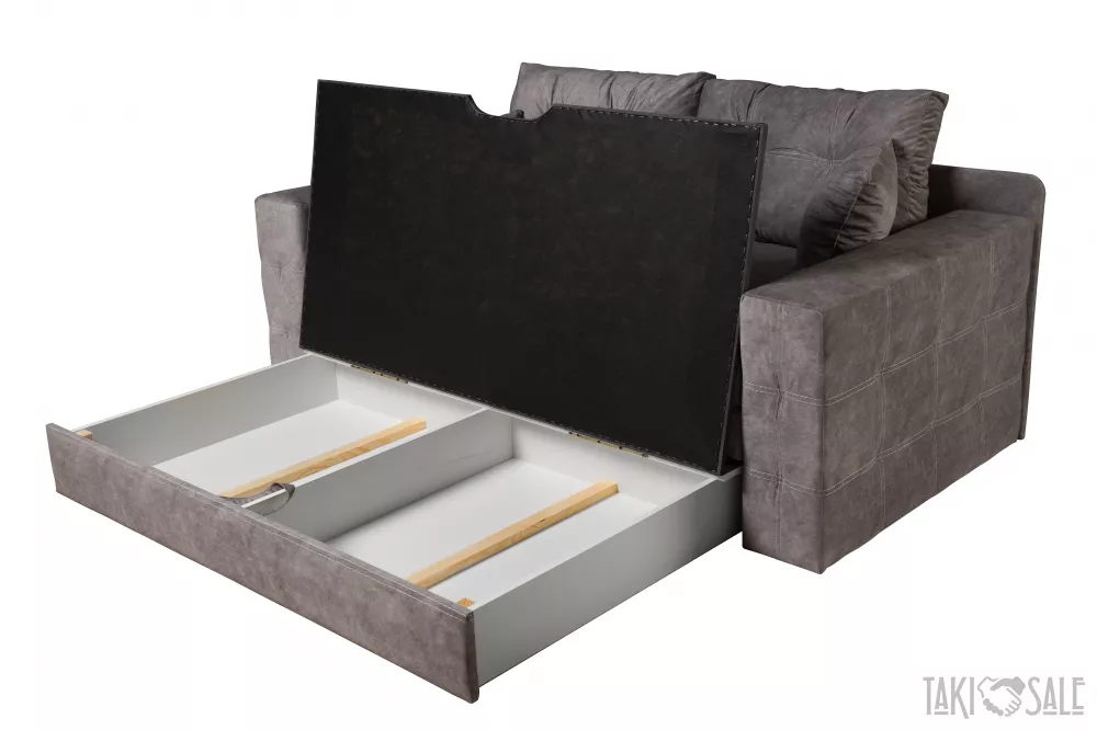 Прямий диван з механізмом викочування. Цей надійний і простий механізм, легко перетворить диван на повноцінне ліжко. Блоки спального місця підтримують тіло, створюють ефект “прямої спини” і забезпечують комфортний і здоровий сон. Під спальним місцем розташований місткий ящик для білизни. Тахта Лаварді має м’які і широкі підлокітники. Подушки виконані з подвійною отстрочкой і декоративними, що обважнюють.
