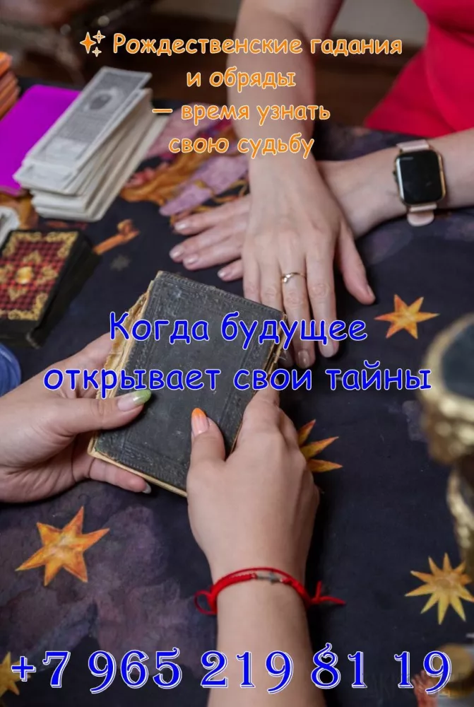Маргарита проводит гадания на картах Таро, по кофейной гуще и линиям руки, которые позволяют увидеть ключевые события будущего, возможные препятствия и перспективы в любви, финансах и личной жизни. В новогодний и рождественский период такие гадания дают особенно глубокую и точную информацию.