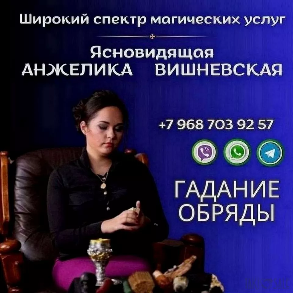 Анжелика Вишневская — потомственная практикующая ясновидящая, которая помогает определить источник проблемы и безопасно устранить его. Работа проводится деликатно и без запугивания, с индивидуальным подходом к каждой ситуации. Консультации возможны как при личной встрече, так и дистанционно — по фото.