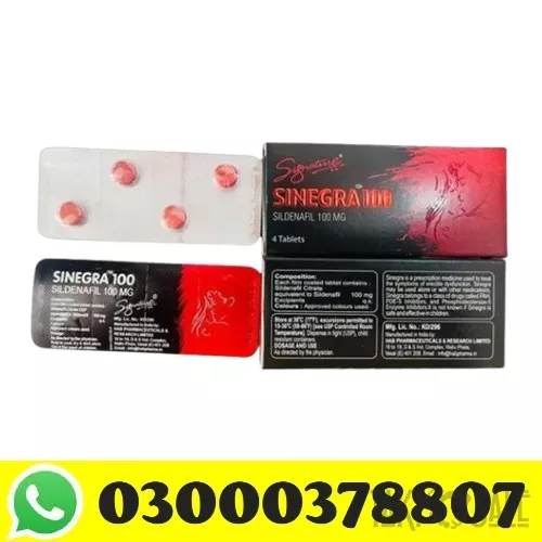 Sinegra 100mg Tablets in Pakistan | 03000378807 | Buy Original! Sinegra 100mg Tablets in Pakistan is a medication commonly used for the treatment of erectile dysfunction (ED) in men. It contains the active ingredient Sildenafil Citrate, which belongs to a class of drugs called PDE-5 inhibitors. What is Sinegra 100mg? Sinegra 100mg tablets help men who have difficulty achieving or maintaining an erection. It works by improving blood flow to the penile area during sexual stimulation, allowing a firm and lasting erection. How it Works Relaxes blood vessels in the penis Increases blood circulation Supports natural erection when sexually aroused Uses: Treatment of erectile dysfunction (ED) Improves sexual performance and confidence Helps maintain erection during intercourse Dosage & Usage: Usually taken 30–60 minutes before sexual activity Effects may last for several hours Should only be used once per day or as prescribed by a doctor Important Precautions: Not suitable for women or individuals under 18. Avoid using with nitrate medications (heart patients). Consult a doctor if you have heart, liver, or kidney issues. Do not exceed recommended dose.