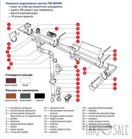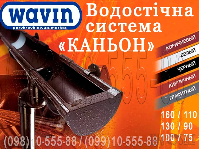 Более подробно с водосточной системой Вавин Каньон Вы можете ознакомиться на нашем сайте https://pervkrovkiev.ua.market/product/2006451-vodostochnaya-sistema-wavin.html