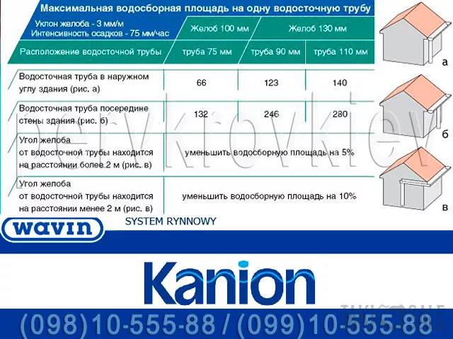 Водосточная система Kanion (Каньон) от польского производителя Wavin (Вавин) - со склада от официального дилера «Первая Кровельная Киев».
