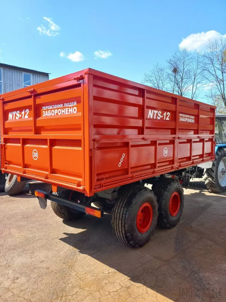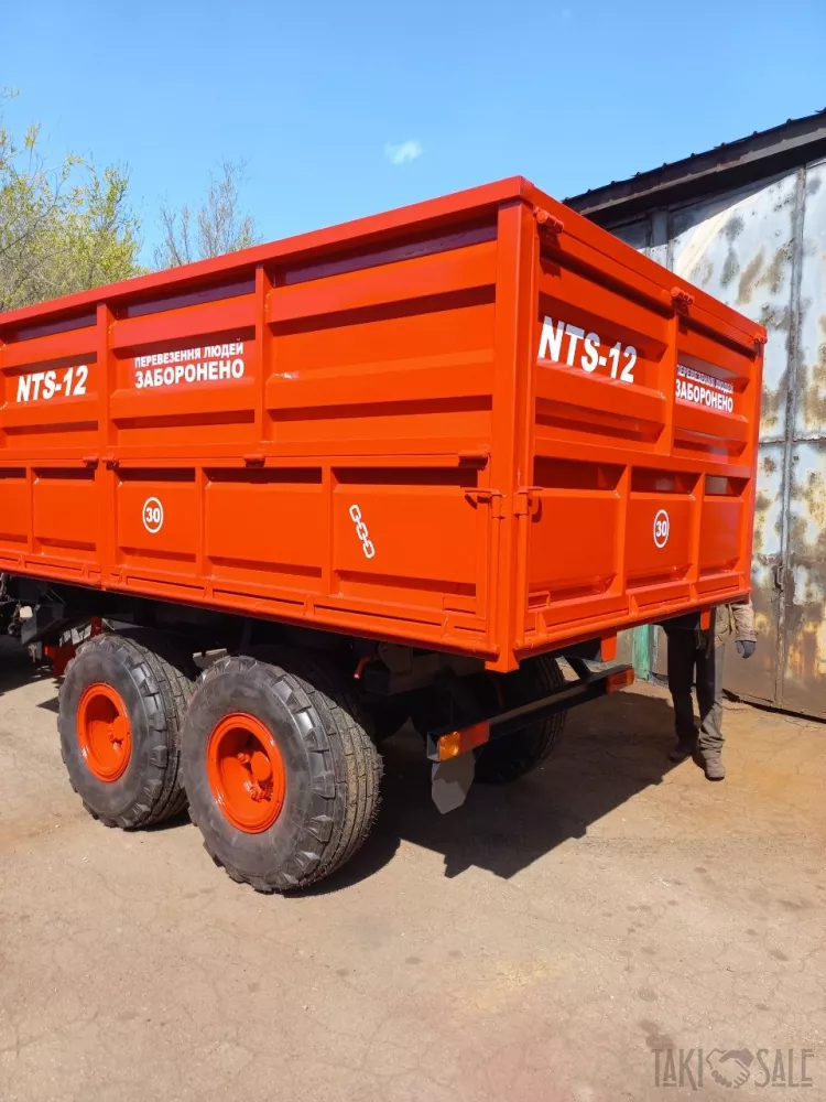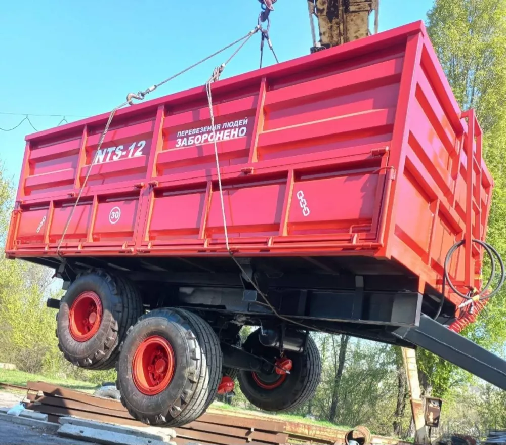 Причеп тракторний НТС-12 — це сільськогосподарський самоскидний причіп, який використовують для перевезення різних вантажів: зерна, силосу, добрив, ґрунту та інших матеріалів. Його головна особливість — можливість розвантаження на три сторони: назад, вліво і вправо. Це дуже зручно під час роботи в полі або на обмежених майданчиках, де немає можливості розвернути техніку.