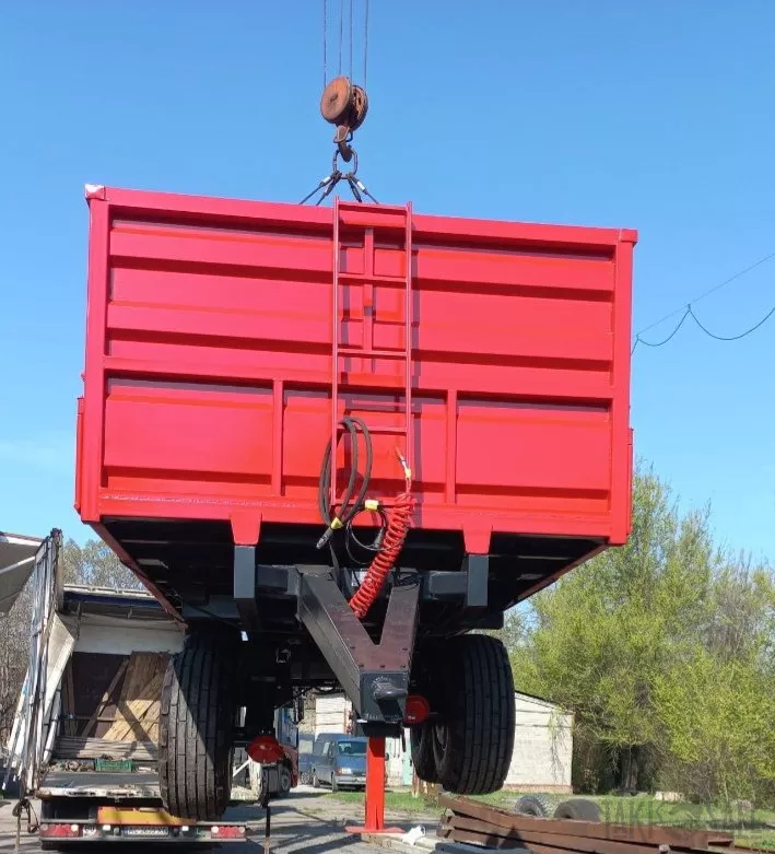 Причеп має міцний металевий кузов великої місткості, що дозволяє перевозити значні об’єми вантажу. Перекидання кузова здійснюється за допомогою гідравлічної системи, яка підключається до трактора. Завдяки цьому розвантаження відбувається швидко та без значних зусиль.