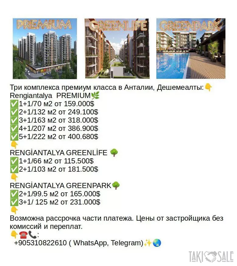Анталия Дешемеалты. Premiun Lux. Три компелекса премиум класса. Лучшее место по климату и безопасности в Анталии. Возможна рассрочка части платежа. Продажа напрямую от застройщика без комиссий и посредников. Ждем вас в нашем офисе застройщика.