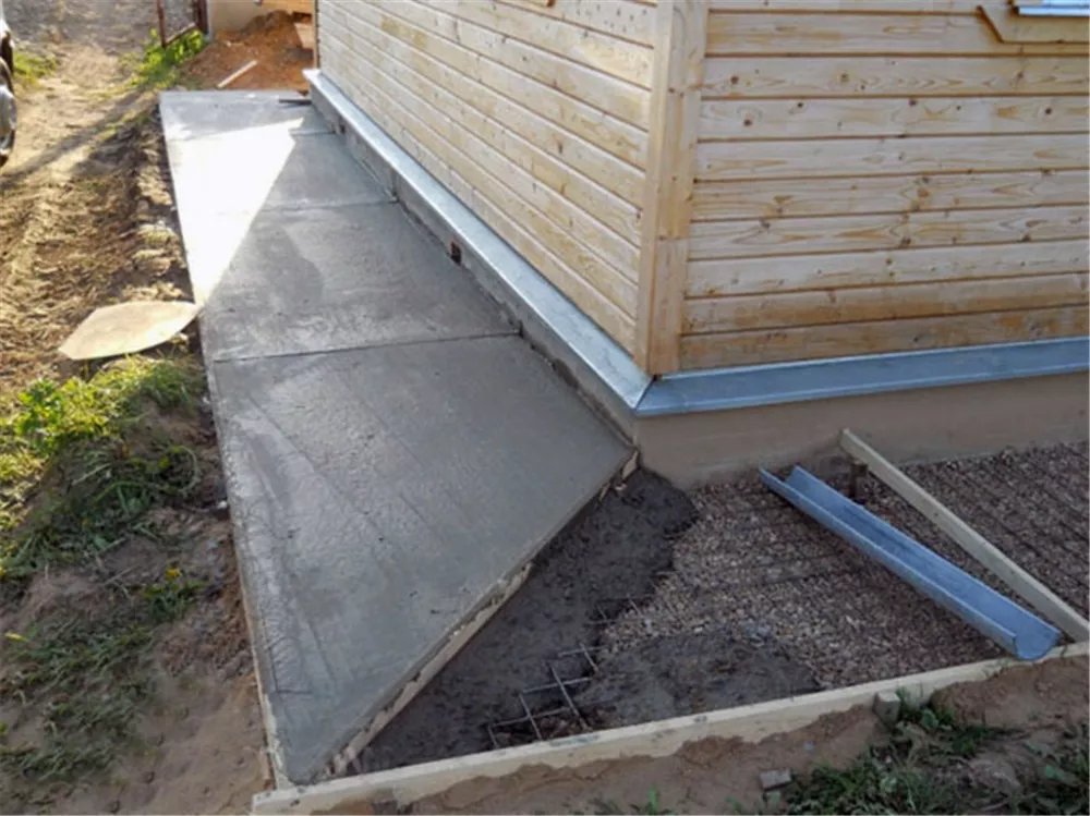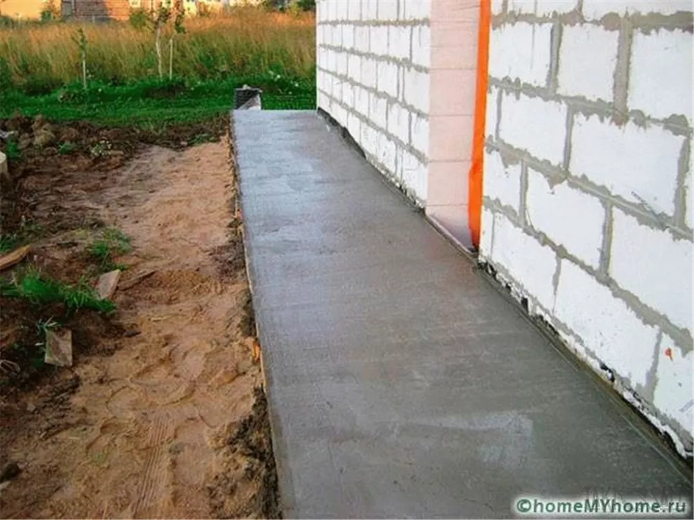 Надежный, проверенный временем способ защиты фундамента от воздействия поверхностных вод – устройство бетонной отмостки вокруг дома. Безусловным преимуществом отмостка из бетона является дешевизна и простота изготовления.