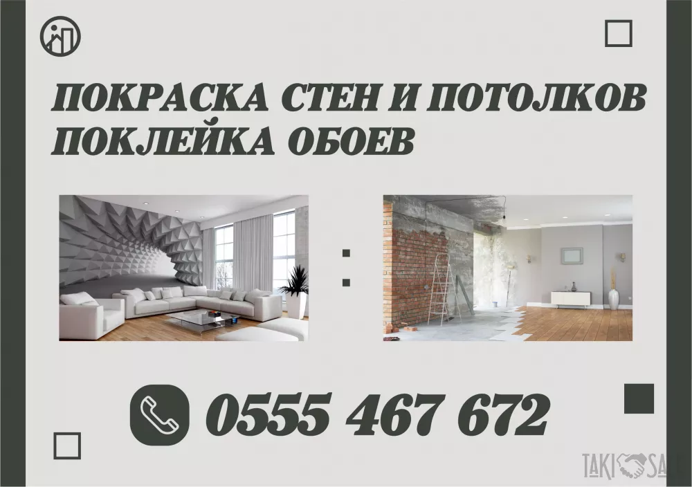 Покраска стен и потолков, поклейка обоев в Бишкеке