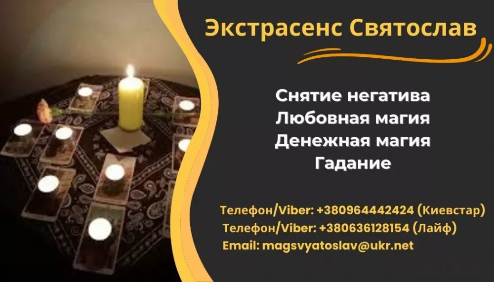 Экстрасенс Святослав предлагает свою помощь тем, кто оказался в сложной ситуации и ищет решение с помощью магии и эзотерических знаний. Его опыт в проведении ритуалов и обрядов, а также глубочайшее понимание работы с энергиями позволили ему помочь сотням людей по всему миру.