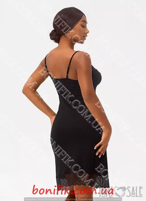 Нічна сорочка виготовлена із чорної віскозної тканини з оптимальним додаванням еластанової нитки.