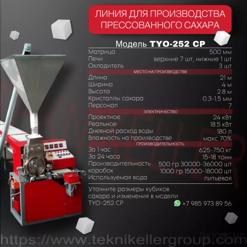 Турецкая компания ООО «ТЕКНИКЕЛЛЕР» предлагает вам полуавтоматические линии по производству сахара рафинада.