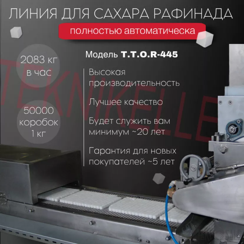 АВТОМАТИЧЕСКОЕ ОБОРУДОВАНИЕ ДЛЯ ПРОИЗВОДСТВА САХАРА РАФИНАДА, МОДЕЛЬ T.T.O.R-445