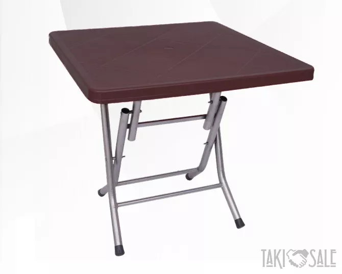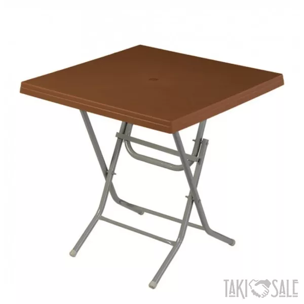 Стіл розкладний квадратний виготовлений з матеріалу поліпропілен, не боїться вологи та перепадів температур, також у матеріал стільниці додано добавки для захисту від ультрафіолетових променів та антистатичні добавки, основа зроблена з металлу і покрита порошковою фарбою, стіл підходить для зовнішнього використання, стіл можна скласти для комфортного зберігання і транспортування, догляд за столом за допомогою звичайних миючих засобів, протирати ганчіркою, розмір столу: ширина 80 см, глибина 80 см, висота 75 см.