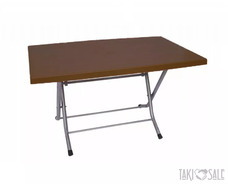 Стіл розкладний прямокутний виготовлений з матеріалу поліпропілен, не боїться вологи та перепадів температур, також у матеріал стільниці додано добавки для захисту від ультрафіолетових променів та антистатичні добавки, основа зроблена з металлу і покрита порошковою фарбою, стіл підходить для зовнішнього використання, стіл можна скласти для комфортного зберігання і транспортування, догляд за столом за допомогою звичайних миючих засобів, протирати ганчіркою, розмір столу: ширина 120 см, глибина 70 см, висота 75 см.