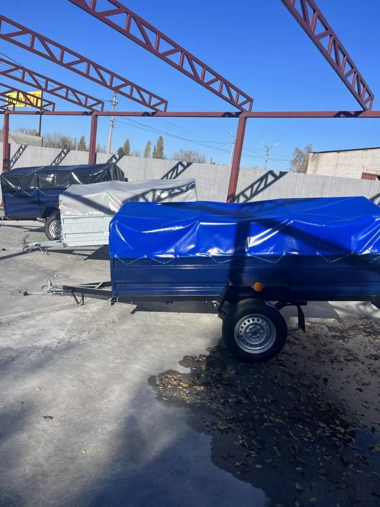 в наявності причепи різних розмірів та комплектації, одновісні та двовісні, бакелітові причепи