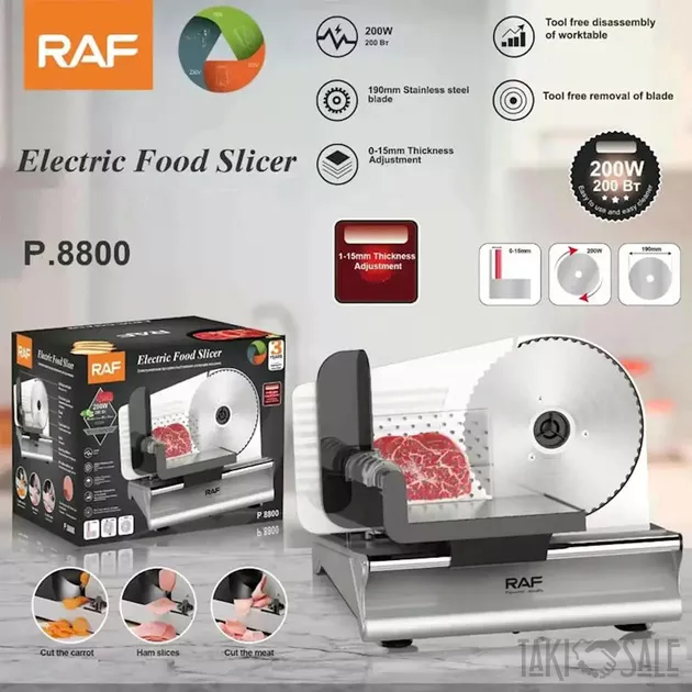 Слайсер  P.8800 – это мощное и многофункциональное устройство, которое станет незаменимым помощником на вашей кухне. Он идеально подходит для быстрой и точной нарезки различных продуктов, от овощей и фруктов до сыра, колбас и мяса. Благодаря высокой производительности, удобству и безопасности, слайсер Raf P.8800 делает процесс приготовления пищи легким и эффективным.