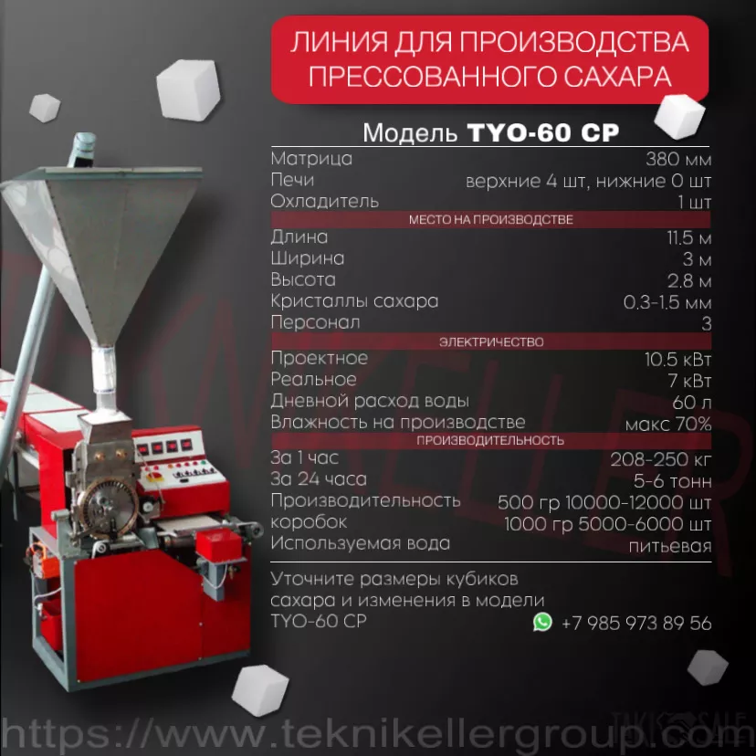 Турецкая компания ООО «ТЕКНИКЕЛЛЕР» предлагает вам полуавтоматические линии по производству сахара рафинада.