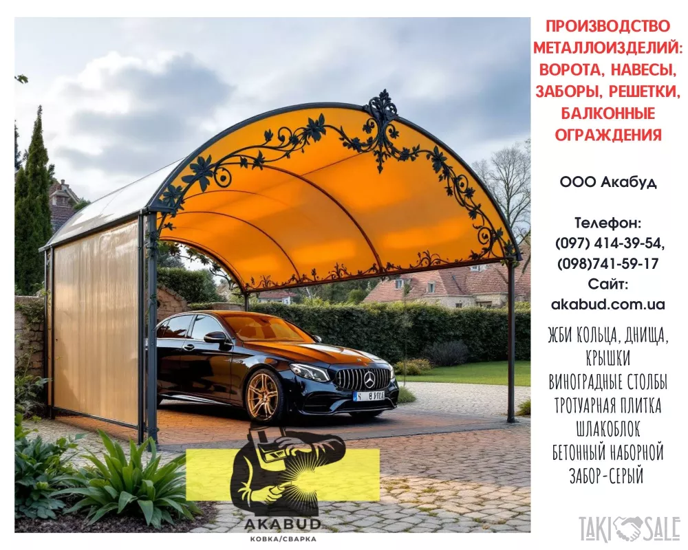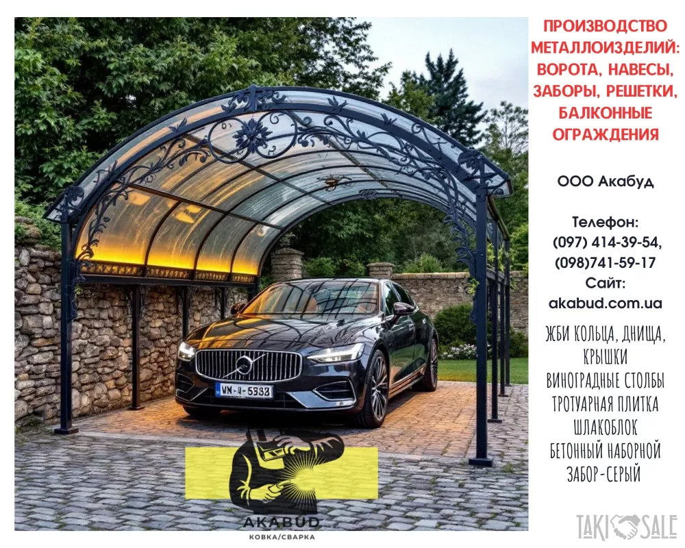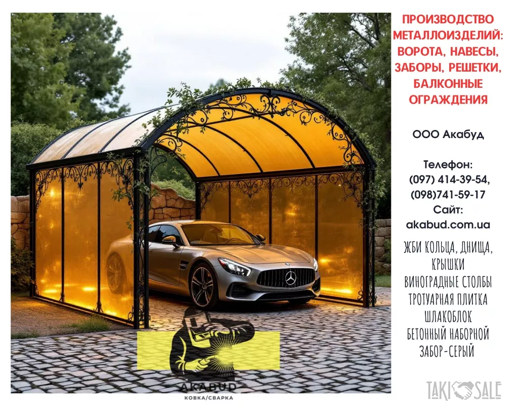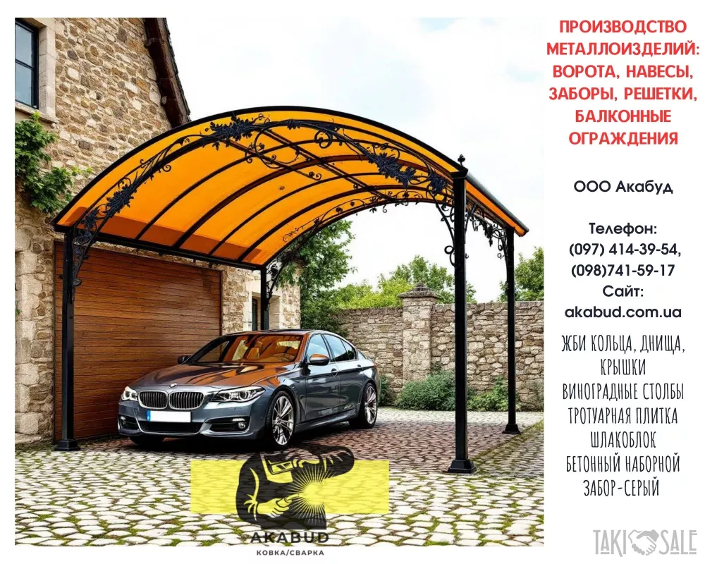 Навіси - класичні та ковані, з дахом із полікарбонату, профнастилу та інших матеріалів.