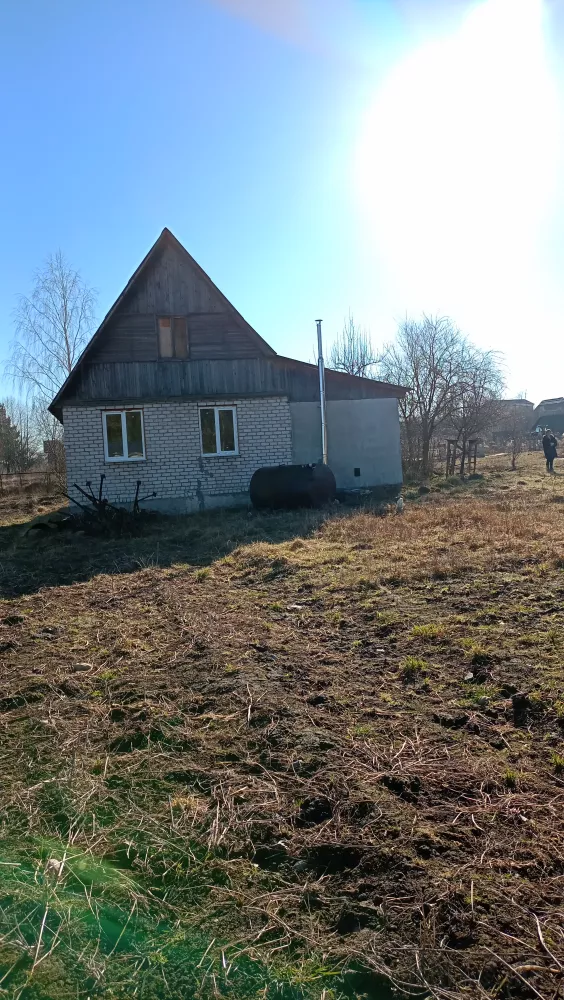 Продаётся дом с участком 25 соток в а/г Курково, 5 км. от г. Смолевичи. Сруб, кирпич. Канализация местная. Водопровод, электричество подведены. Есть электрокотёл и котёл на твёрдом топливе. Газ не подведён (газопровод на соседней улице). Общая площадь дома 88,2 кв. м. Выполнен черновой ремонт (стеклопакеты, шифер, гипсокартон, радиаторы отопления, розетки 220 В., электропроводка). Растут плодовые деревья и кусты, разработан участок под огород (грядки, удобрения, плодородная почва).  Цена 35 тыс. долларов США.