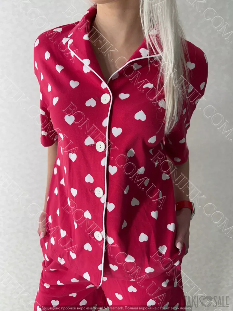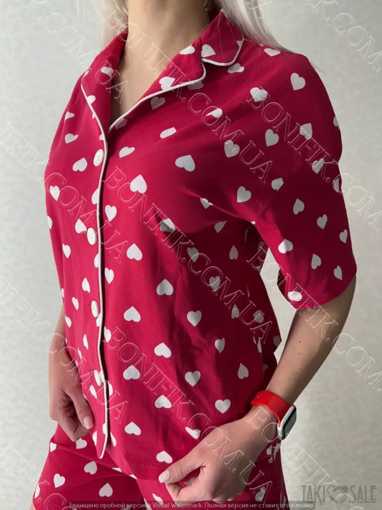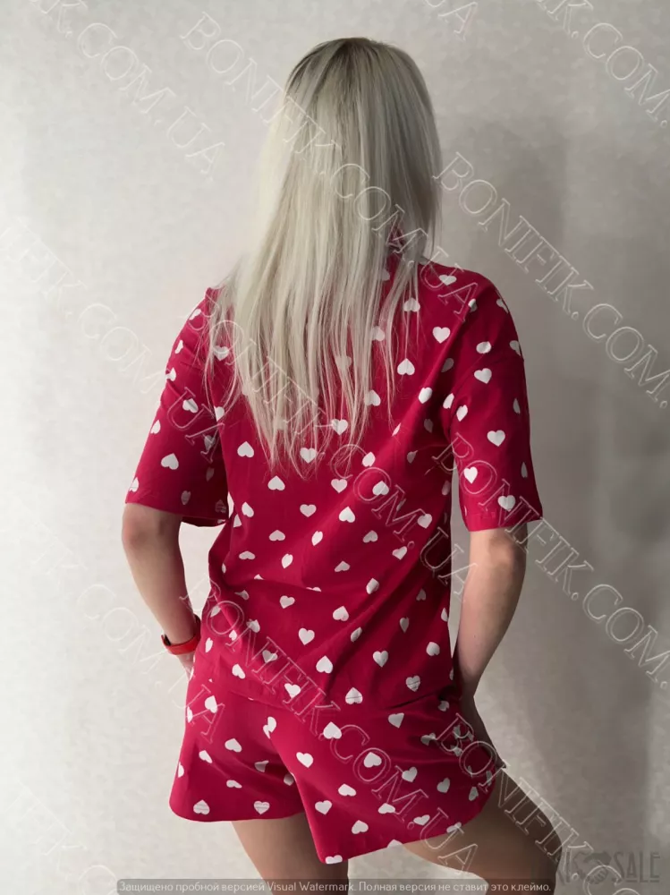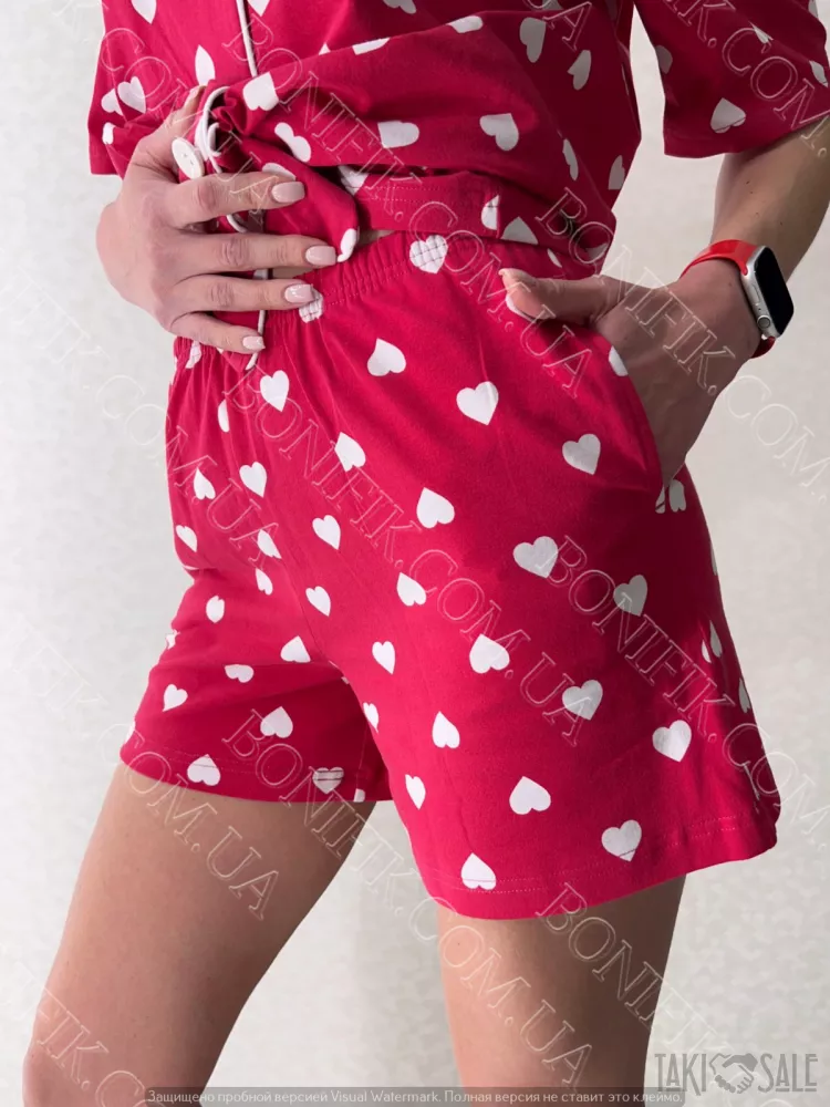 Шорти прикрашені малюнками сердечок для зручності присутні карманчики по бокам.