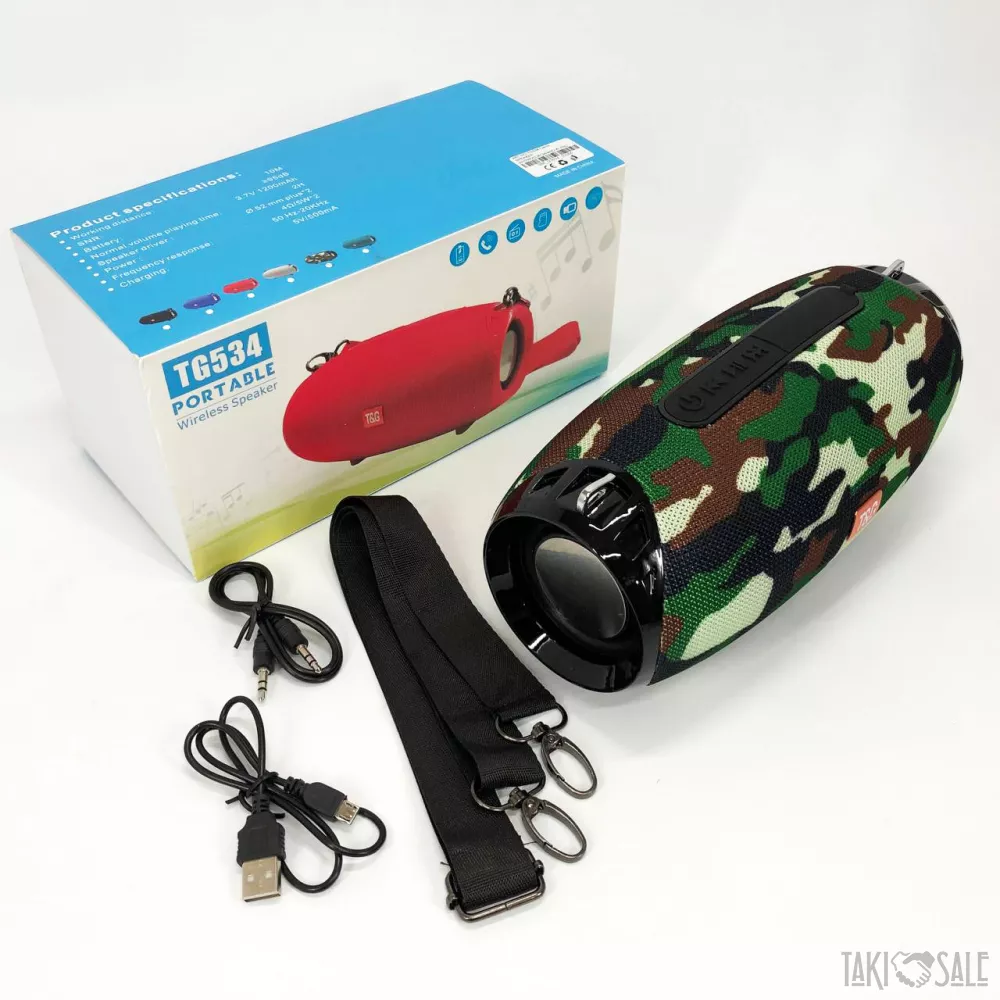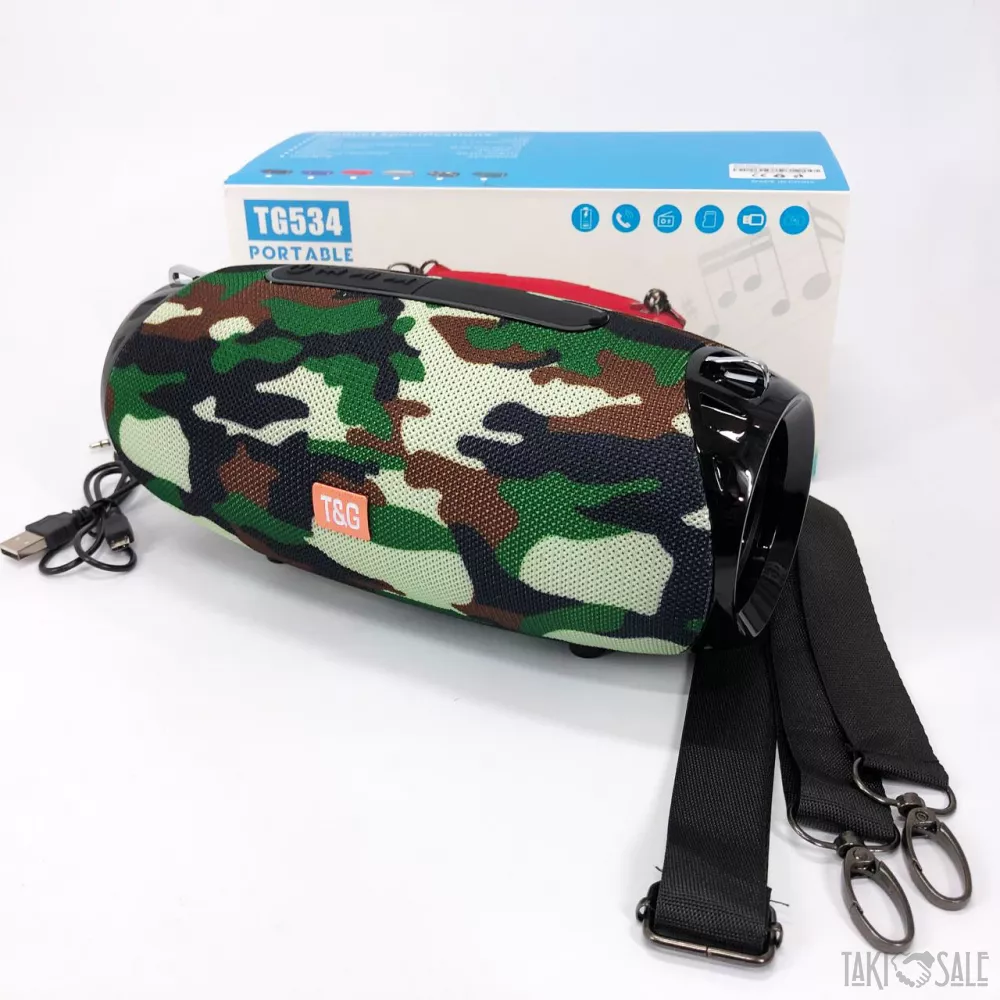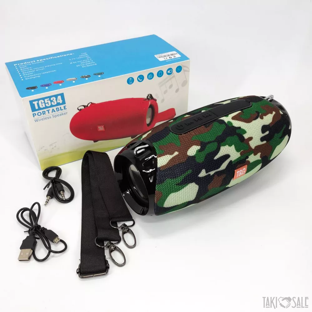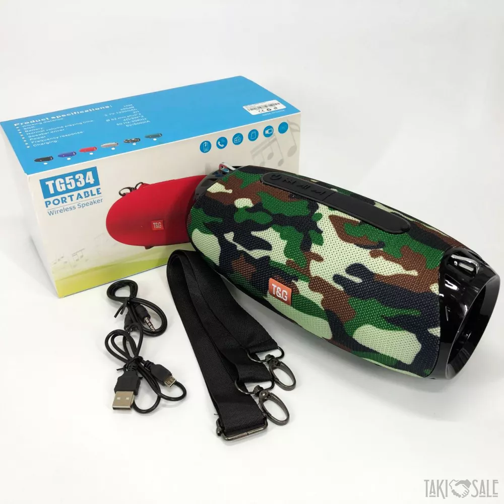 Колонка TG534 оснащена двумя динамиками общей мощностью 10 Вт. Благодаря этому, а также частотному диапазону от 120 до 20 кГц обеспечивается качественное звучание самых разных музыкальных композиций. Модель поддерживает воспроизведение аудио в формате MP3, WAV, WMA, FLAC, APE. Чтение файлов может осуществляться с карт памяти microSD, а также с внешних устройств, подключенных при помощи USB или Bluetooth. Из других разъемов на корпусе доступен линейный AUX-вход. Также предусмотрена функция Hands Free для разговора по телефону и функция TWS 1+1, которая позволяет соединить два динамика в стереопару для воспроизведения более объёмного звучания.