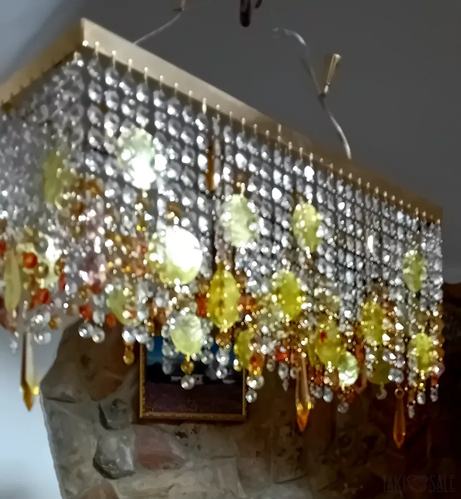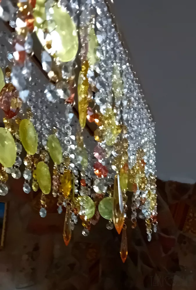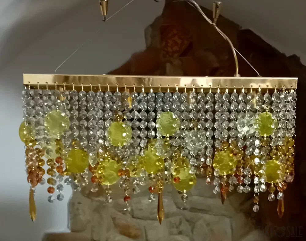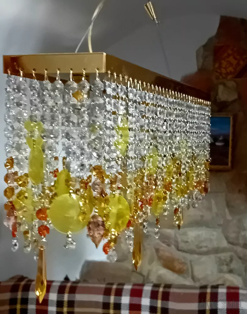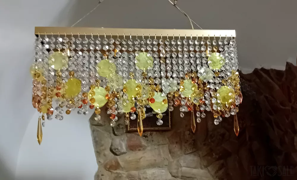 Il lampadario «Sunny Italy» ha un'atmosfera molto allegra e donerà sempre un tocco di sole ai vostri interni. Dopo il restyling è decorato con cristallo, madreperla naturale e Murano colorato. Lampadario con 4 punti luce, consigliato per stanze con soffitti bassi. Dimensioni: lunghezza 55, larghezza 14, altezza 40-42