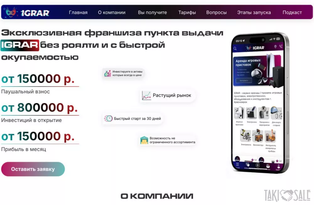 Франшиза IGRAR - это эксклюзивный пункт выдачи в твоем городе без роялти и быстрой окупаемостью!