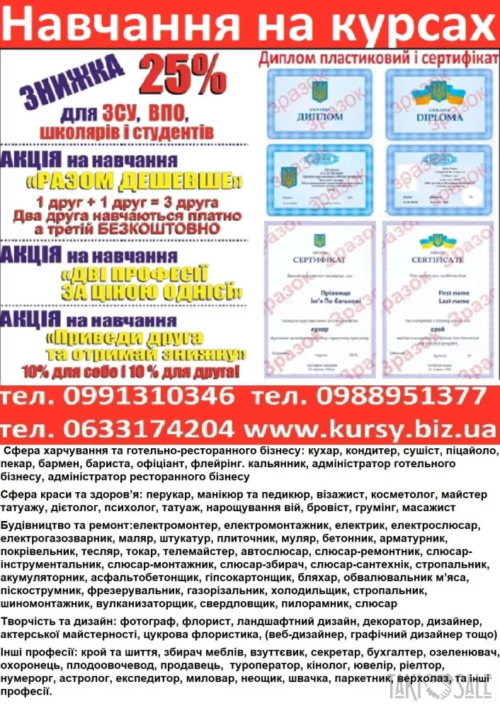 Курси зварник, електрик, слюсар, маляр, токар, плиточник, бетонщик, тесляр