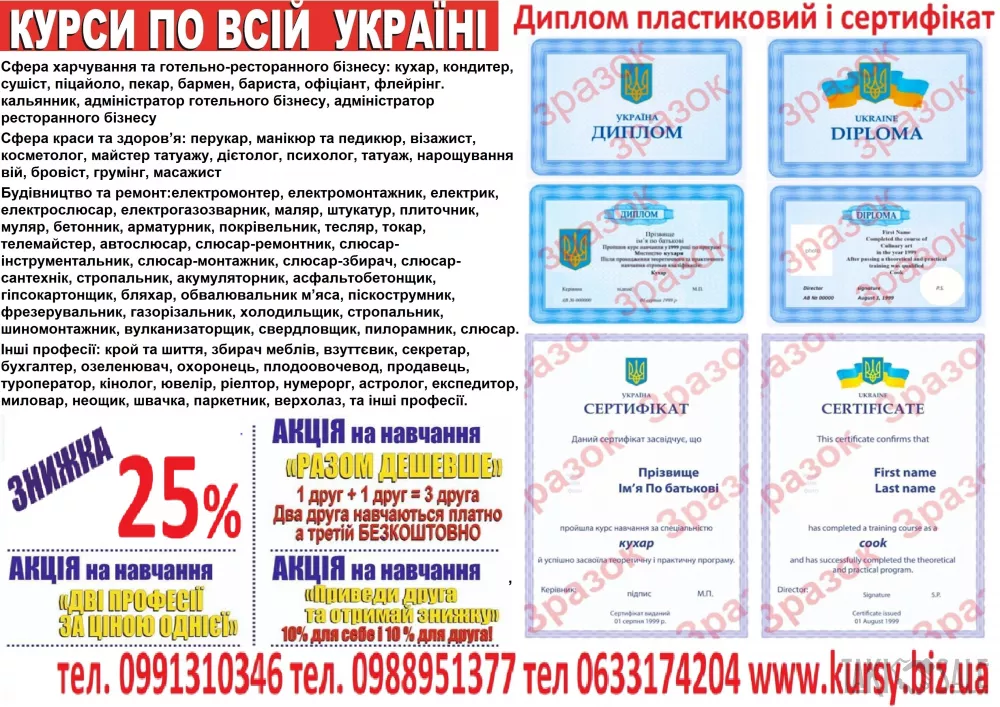 Курси грумінга, бухгалтера, секретаря, акумуляторника, холодильщика, гипсокартонщика