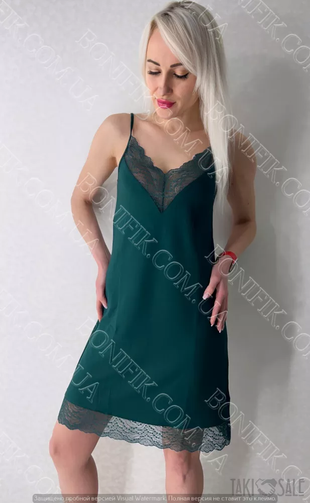 Нічна сорочка з якісного модального полотна з еластановою ниткою і бавовни зеленого кольору.