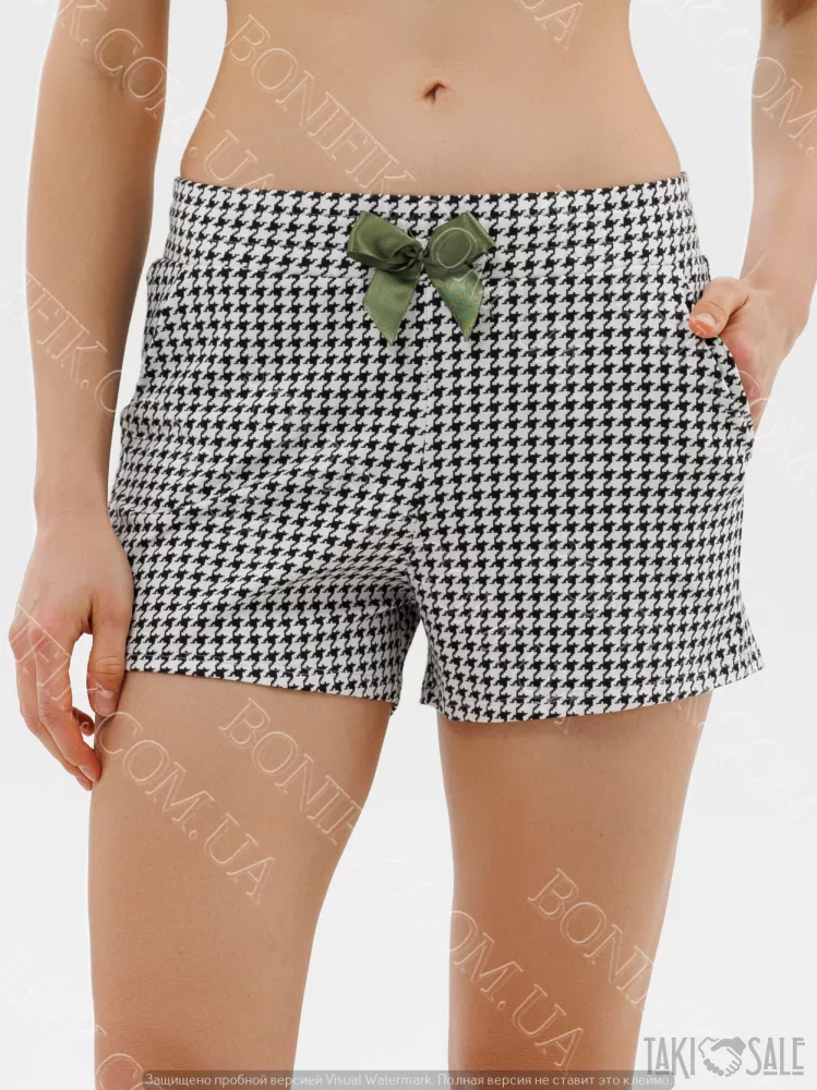 Шорти з м'якою резинкою на поясі, декорована принтом чорно-білу клітинку. Піжама виготовлена із найкращого м'якого бавовняного волокна.