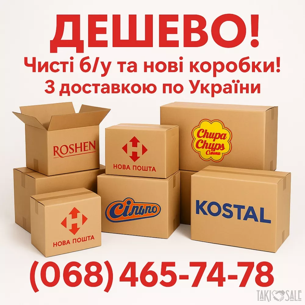 Шукаєте, у що спакувати речі чи товари? Не хочете переплачувати за нову упаковку? Ми вас зрозуміли! Пропонуємо чисті, цілі, міцні картонні коробки після одноразового використання, а також абсолютно нові - на будь-який смак і розмір. Ідеальні для переїздів, зберігання, відправки товарів, ремонту і навіть творчих ідей. Всі коробки вручну перебрані - тільки надійні та акуратні Є маленькі, середні й великі Постійно поповнюємо склад - обирати є з чого Швидка доставка по Києву і всій Україні (Нова Пошта, Делівері, попутки) Ціни - чесні. Від 3грн. за маленькі, від 10 грн за середні, від 20 грн за великі. Допоможемо підібрати кількість і розміри, які підходять саме вам. ПРОСТО ПОДЗВОНІТЬ — І ВЖЕ СКОРО КОРОБКИ БУДУТЬ У ВАС! Тел.: 0684657478