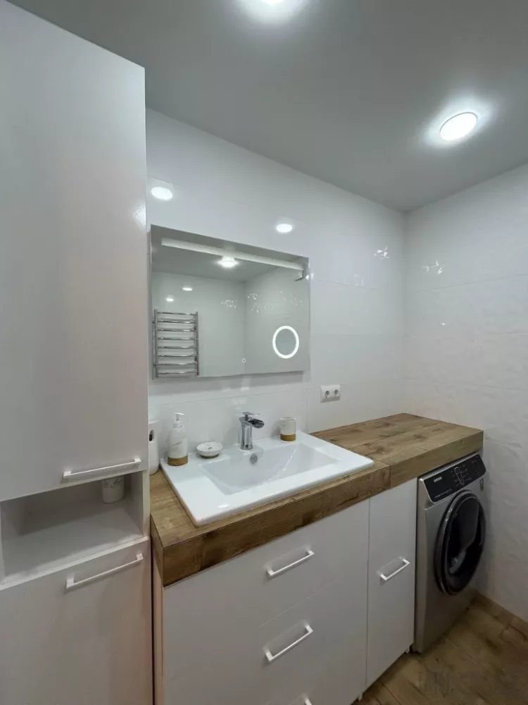 • Современная ванная комната: Стиральная машина, полотенца, все необходимые гигиенические принадлежности.