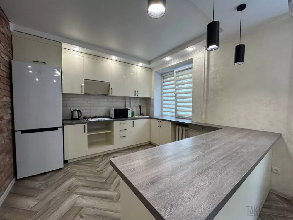 - Полностью оборудованная кухня с необходимой посудой и техникой: холодильник, плита, микроволновка – все для вашего удобства!