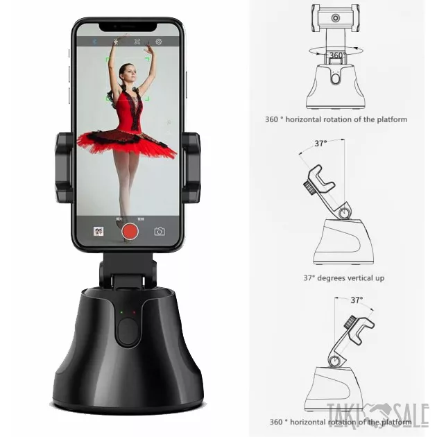 Умный держатель для телефона сможет распознать лицо, вращается на 360 градусов и автоматически распознает как человека, так и питомца. Когда вы совершаете движение, умный держатель для съемки будет поворачивать ваш мобильный телефон к тому месту, куда вы хотите пойти, установит позицию при остановке и сделает снимки автоматически в фиксированное время 3 секунды. Умная подставка держатель для смартфона отлично подходит съемки для лекций, спортивных мероприятий, презентаций. Смарт держатель для телефона с легкостью сделает групповые фотографии, записи видео для Tik Tok, Instagram, Facebook Live, Vlogging.