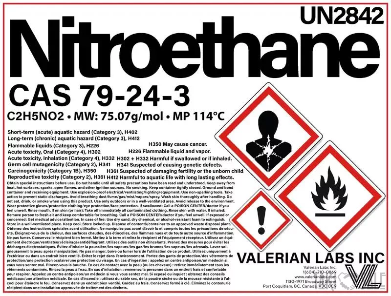 Нитроэтан - бесцветная маслянистая жидкость с мягким фруктовым запахом. Нитроэтан представляет собой алифатическое нитросоединение. Нитроэтан хорошо растворяется в воде, хорошо в органических растворителях. Он также растворяется в щелочных соединениях. Реакционноспособное соединение. При хранении на свету он желтеет из-за образования растворимых полимерных соединений. Он используется в качестве пропеллента, а также в качестве растворителя или растворителя для: эфиров целлюлозы, смол (виниловых и алкидных), восков и в химическом синтезе. Благодаря очень хорошей растворимости в органических растворителях он включается в смешанные растворители, а также в каталитические системы, главным образом благодаря способности растворять хлорид алюминия.