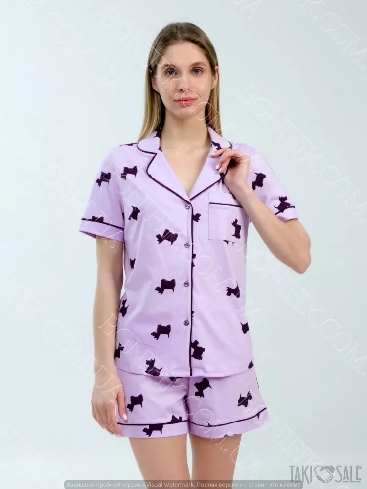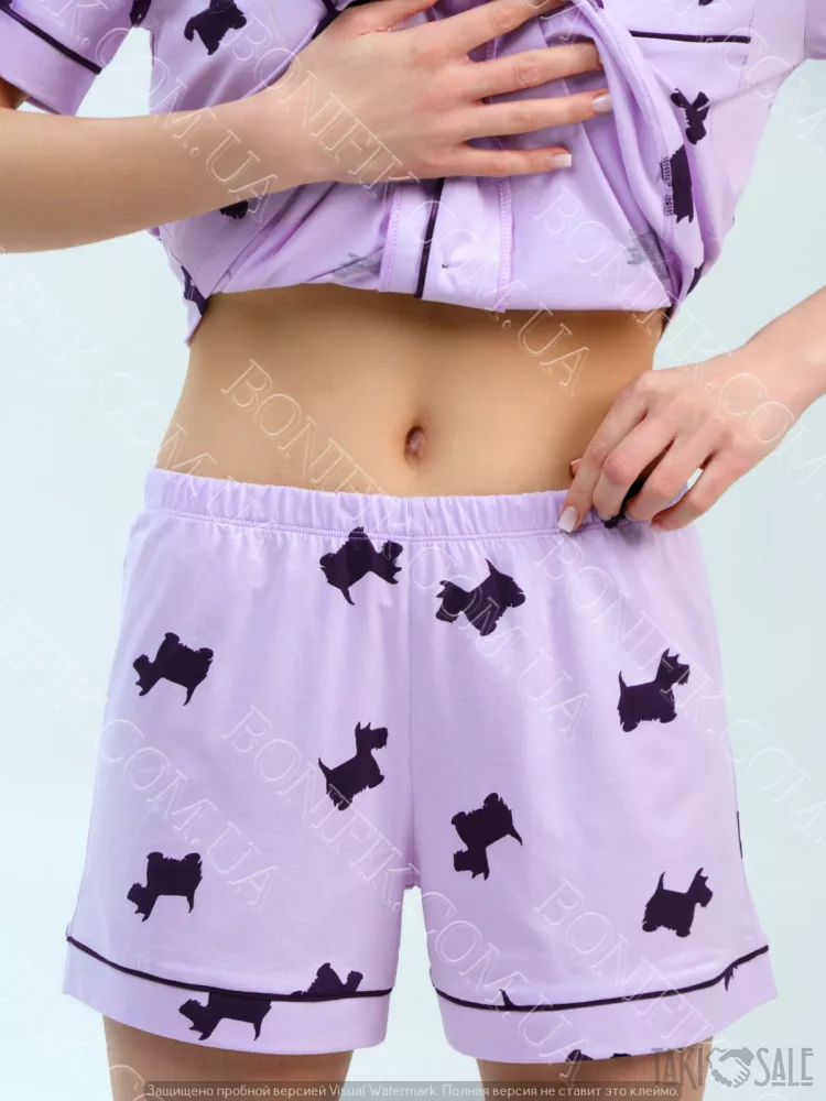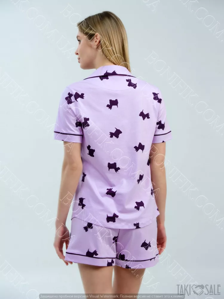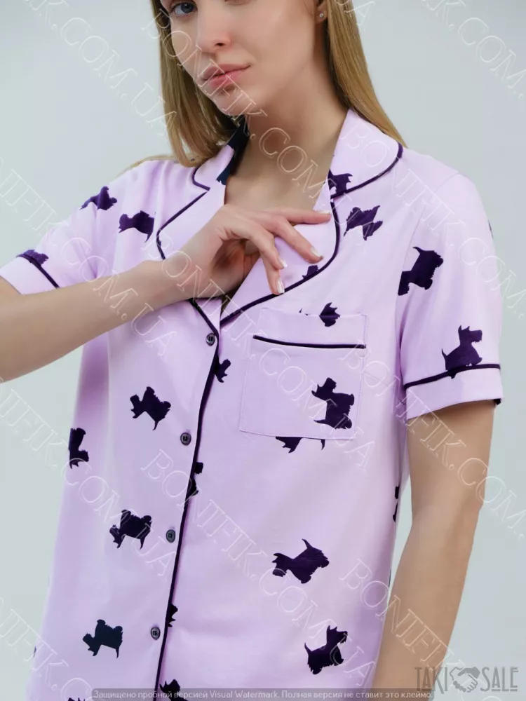 Пориньте в затишок і комфорт з цією стильною жіночою піжамою «Lavender Puppies» в ніжно-лавандовому кольорі від українського виробника ТM «Roksana».