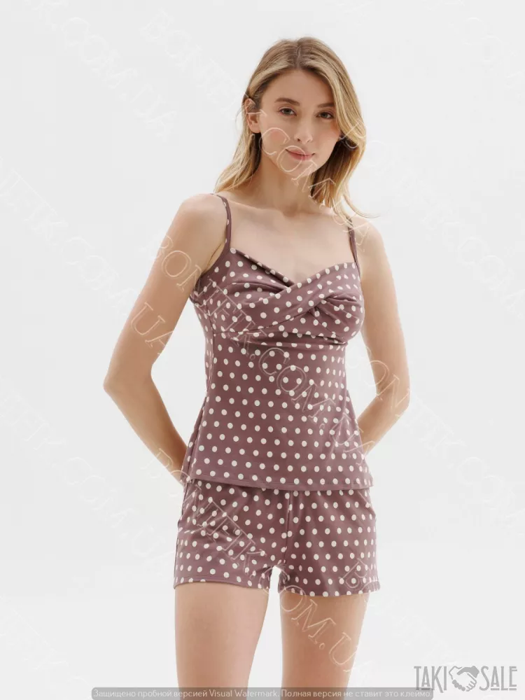 Елегантна та комфортна — ця жіноча піжама в горошок стане ідеальним вибором для літнього сну та відпочинку вдома.