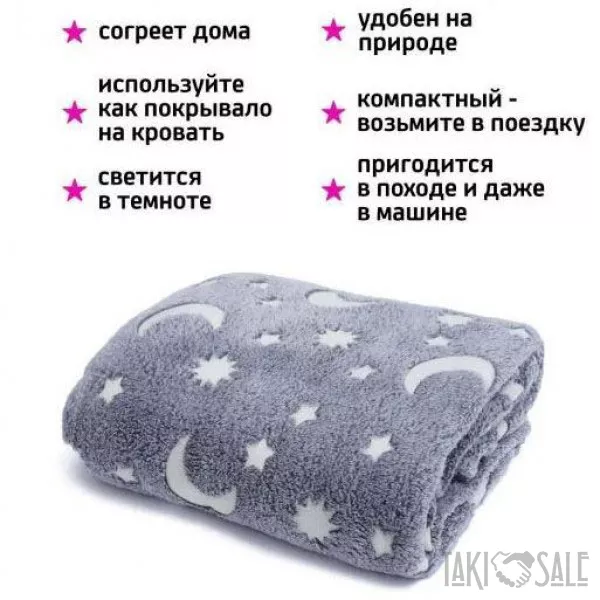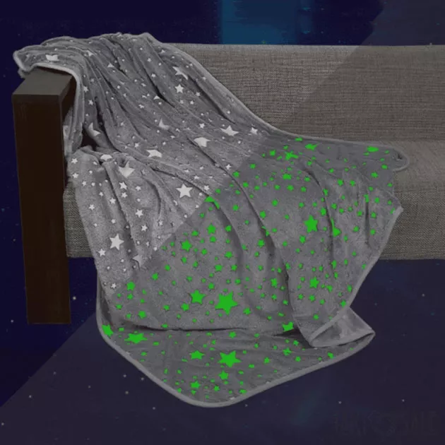 Плед светится в темноте, гипоаллергенный, мягкий и очень приятный на ощупь. Звезды загораются в темноте благодаря специальному материалу. Супер мягкий и удобный плед выполнен из качественной микрофибры. Стильный дизайн подойдёт под любой декор, а также в качестве детского ночника