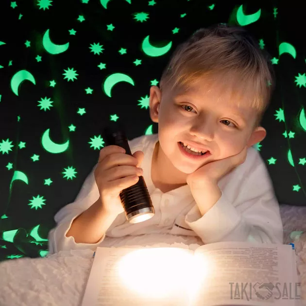 После звезды постепенно меркнут. Светящиеся звезды на пледе работают как накопитель – в светлое время накапливают частички света, а при наступлении темноты постепенно его отдают.
