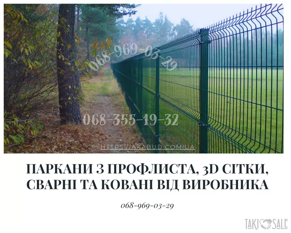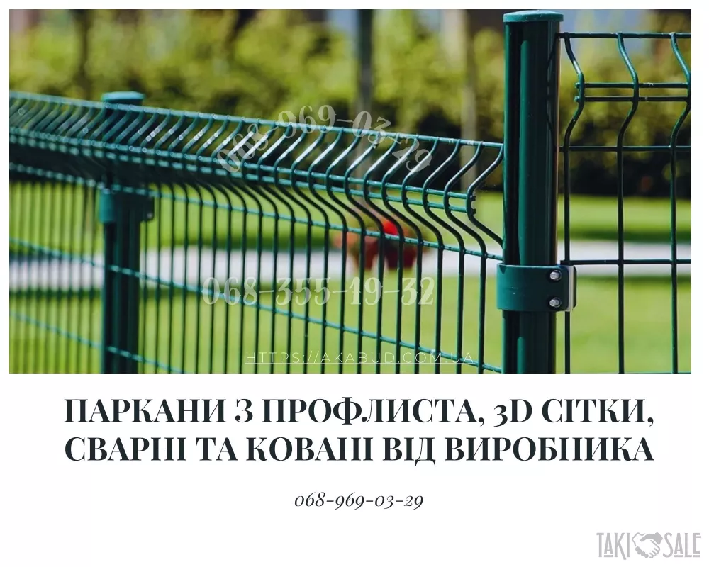 - Паркани - зварні, ковані, з профлиста, 3D сітки