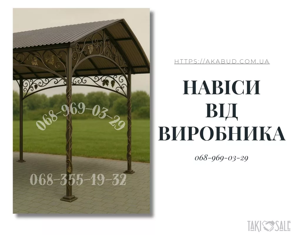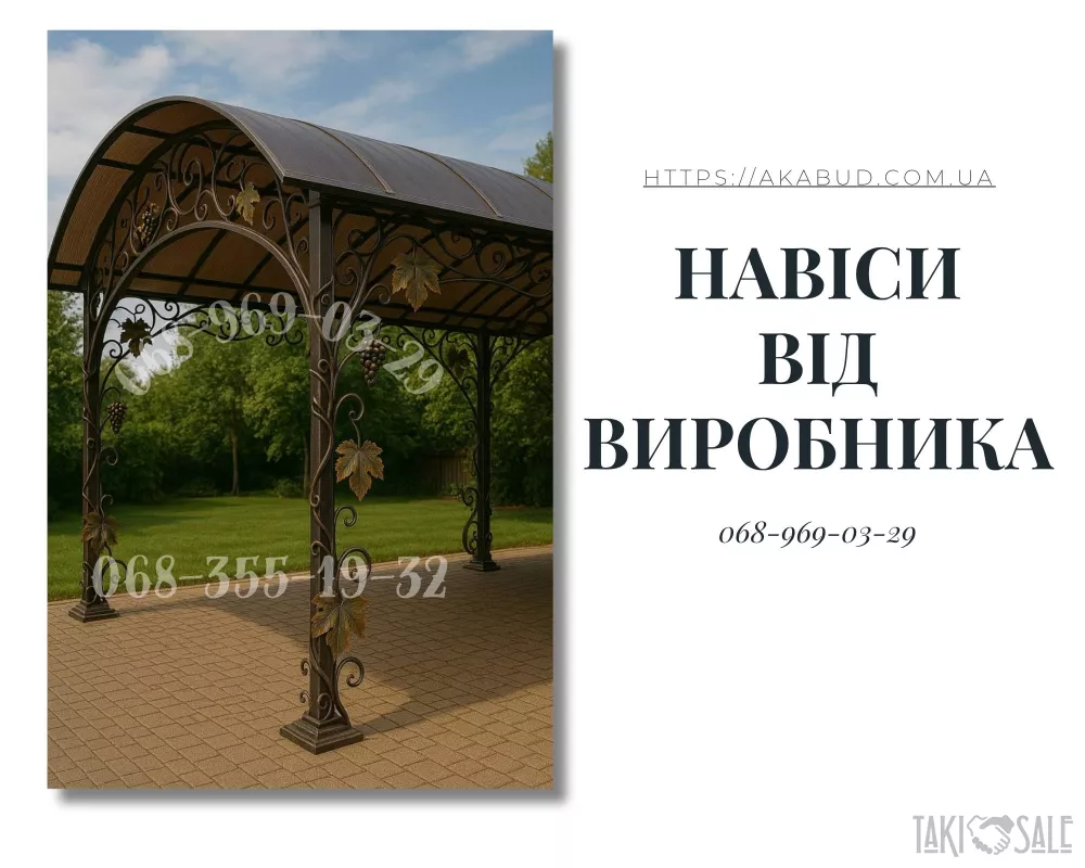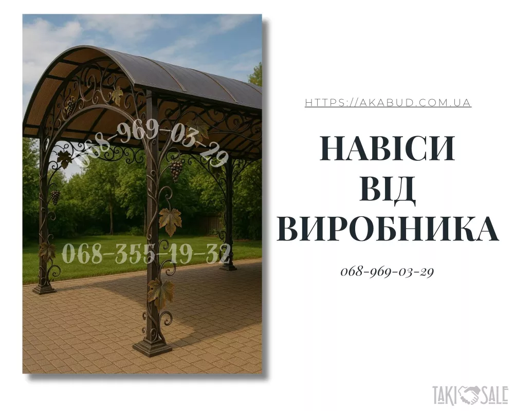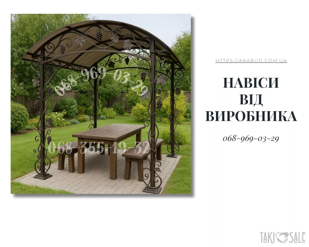 - Навіси - односхилі, двосхилі, арочні, навіси для авто, терас, зон відпочинку