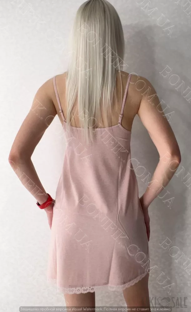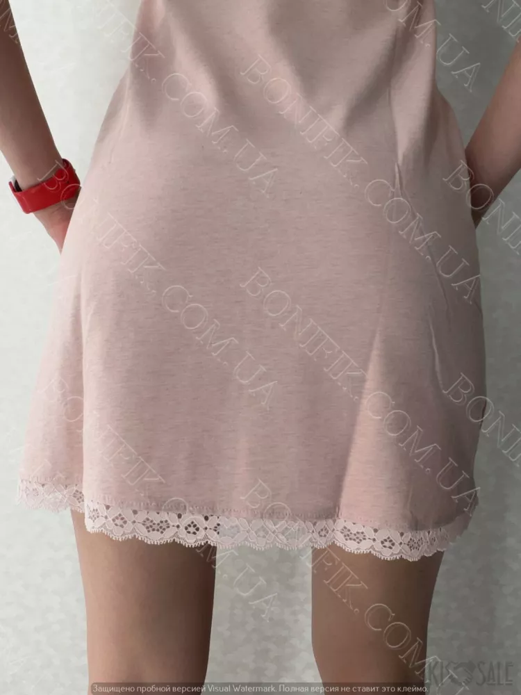 М'яка тканина ніжно лягає по тілу, не обмежуючи рухів, тонкі бретелі подарують легкість та комфорт. Делікатне мереживо по низу подолу підкреслить жіночність силуету.