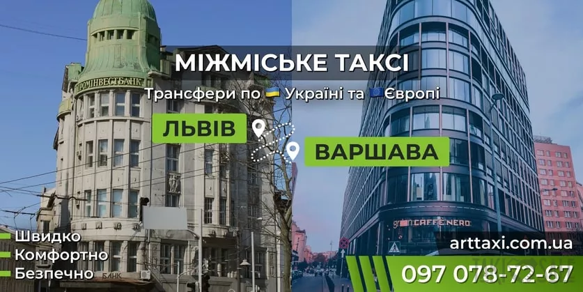 Предлагаем надежные пассажирские перевозки, трансфер по Украине и за границу:Междугороднее такси по всей УкраинеМеждународные трансферы:  • Киев — Варшава  • Киев — Будапешт  • Львов — Варшава  • Львов — Краков и другие направления. Подходит для командировок, поездок за границу, студентов, туристов.  Помощь с багажом.  Детские кресла — бесплатно.  Комфортабельные авто, вежливые водители.  Ежедневные выезды, удобное время. Без пересадок — забираем прямо от дома.  Фиксированная цена, без доплат. Звоните или пишите в Viber / Telegram:Тел.: 097 078-72-67Сайт: https://arttaxi.com.ua/ru/%20