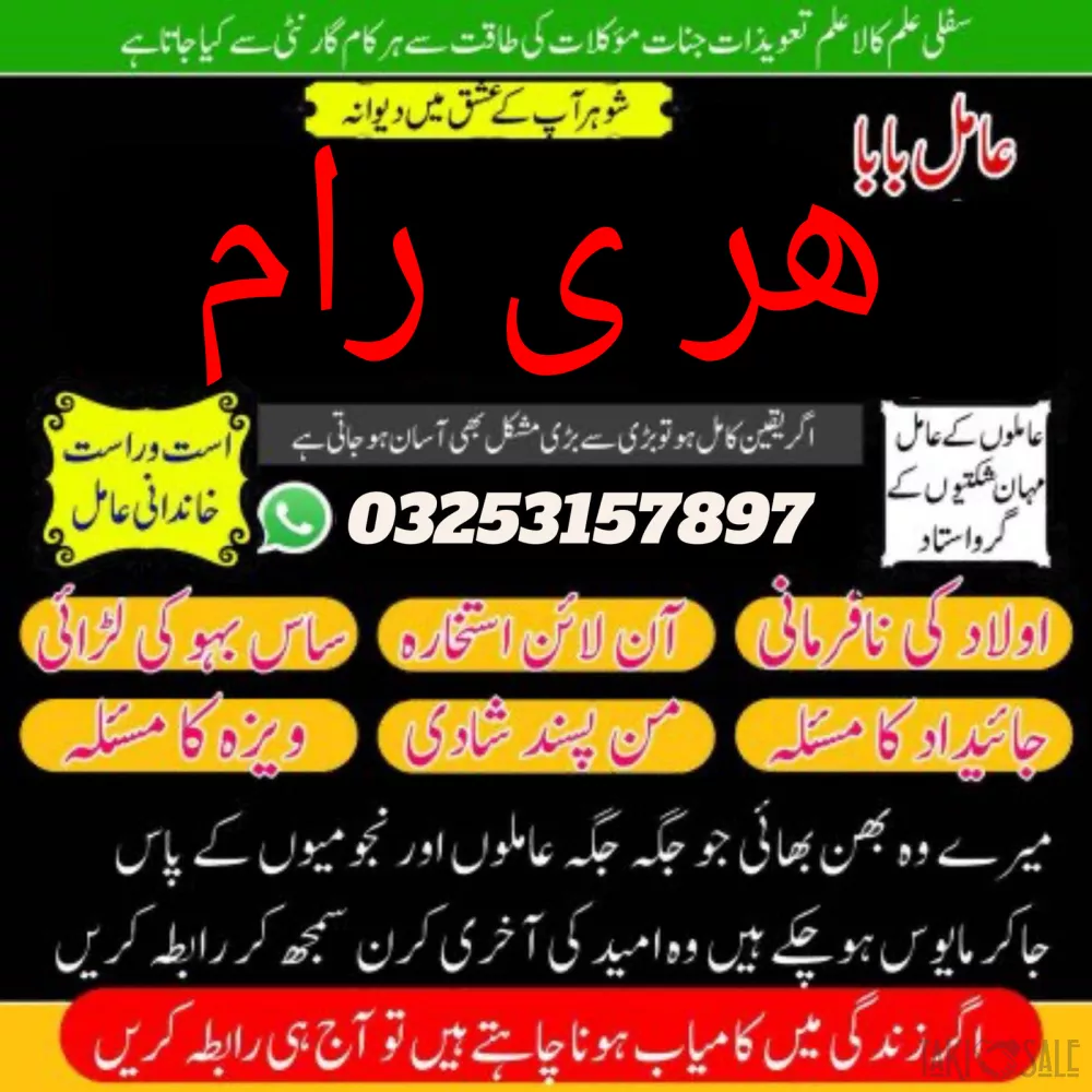کوئی بھائی بہن بیٹی پریشان ہے رابطہ کرے موت کے علاوہ دنیا میں ایسا کوئی بھی کام نہیں جو نا ہو سکے یقین کرنا اپکا کام ہے اور کام کر کے دکھانا میرا ، شادی کا مسلہ،کاروباری بندش،امتحان میں ناکامی،گھریلوں مسلے ہر کام گارنٹی اور راز داری کے ساتھ کیا جائے گا (جائز اور ناجائز )بھی کیا جاتا ہے  انشاءاللہ
