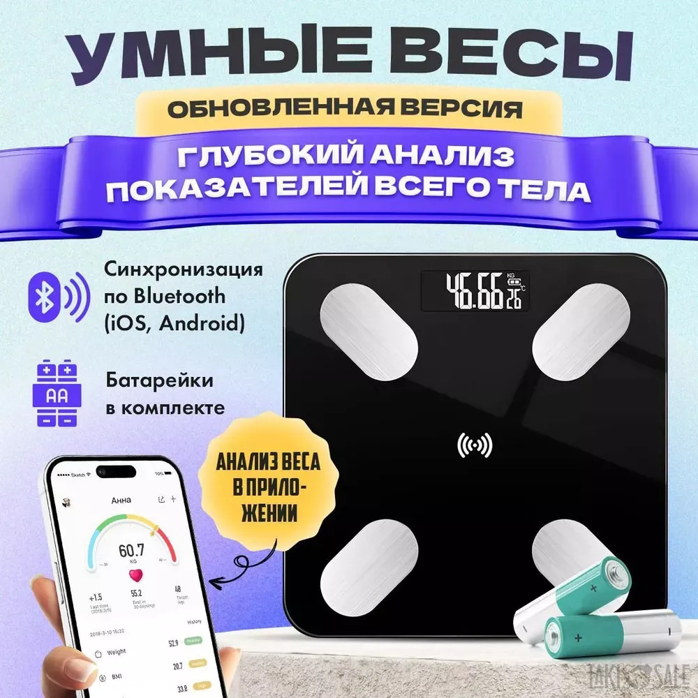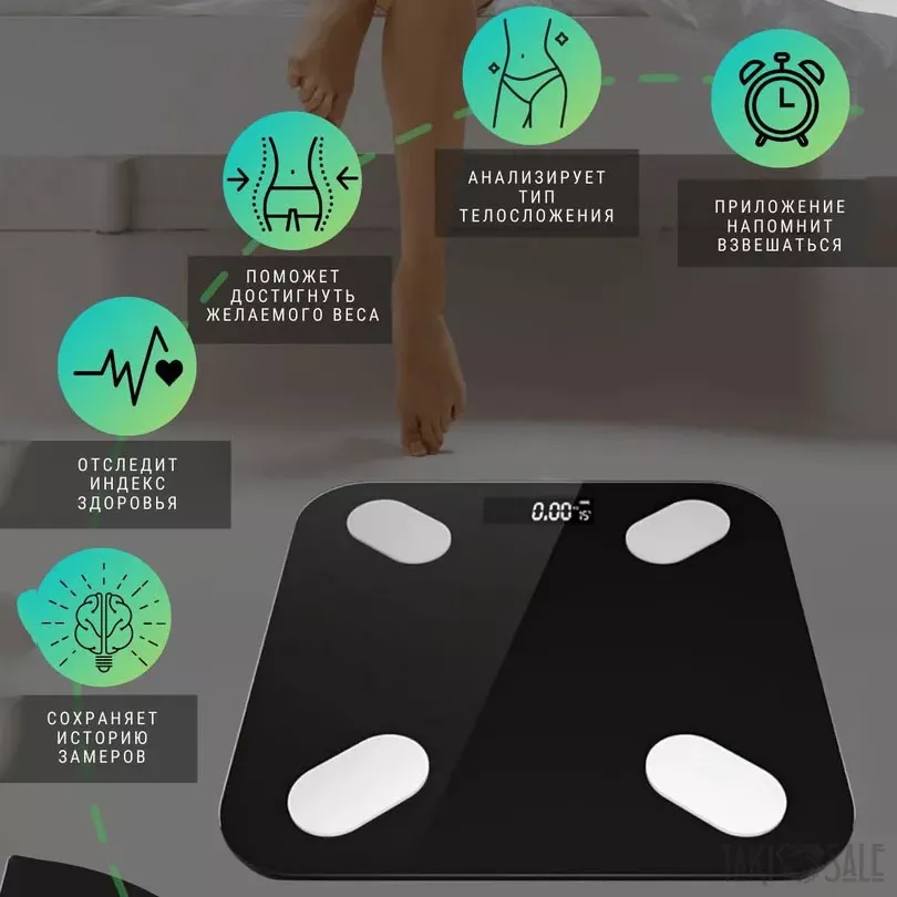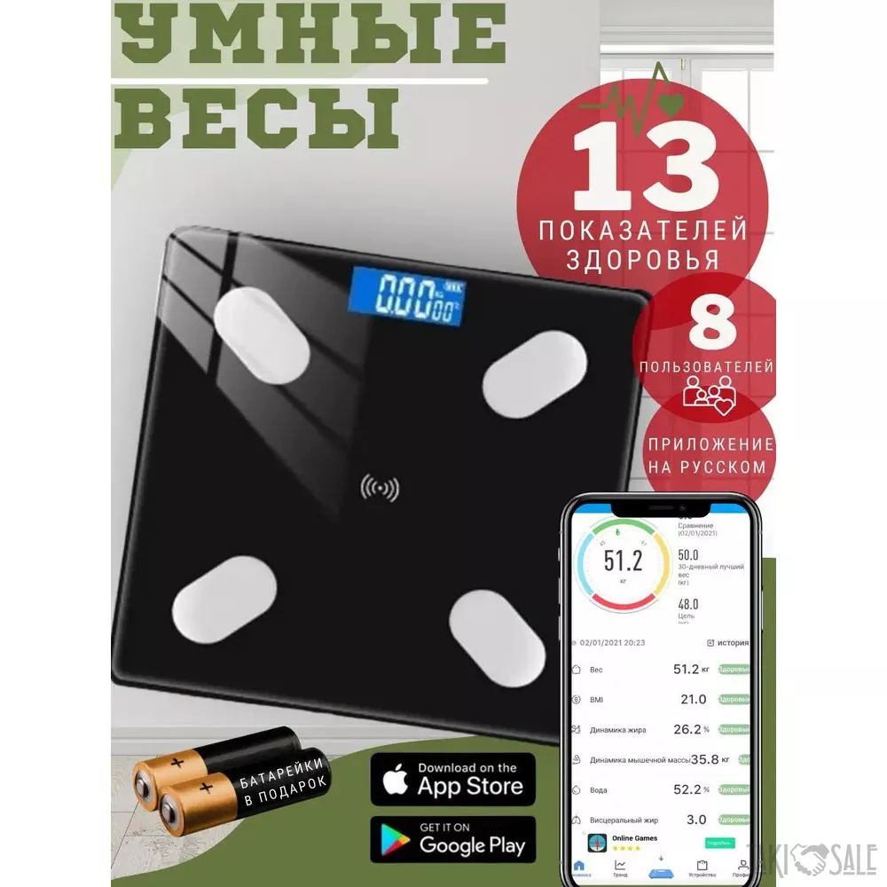 Смарт весы напольные, электронные с приложением на телефон, до 180 кг