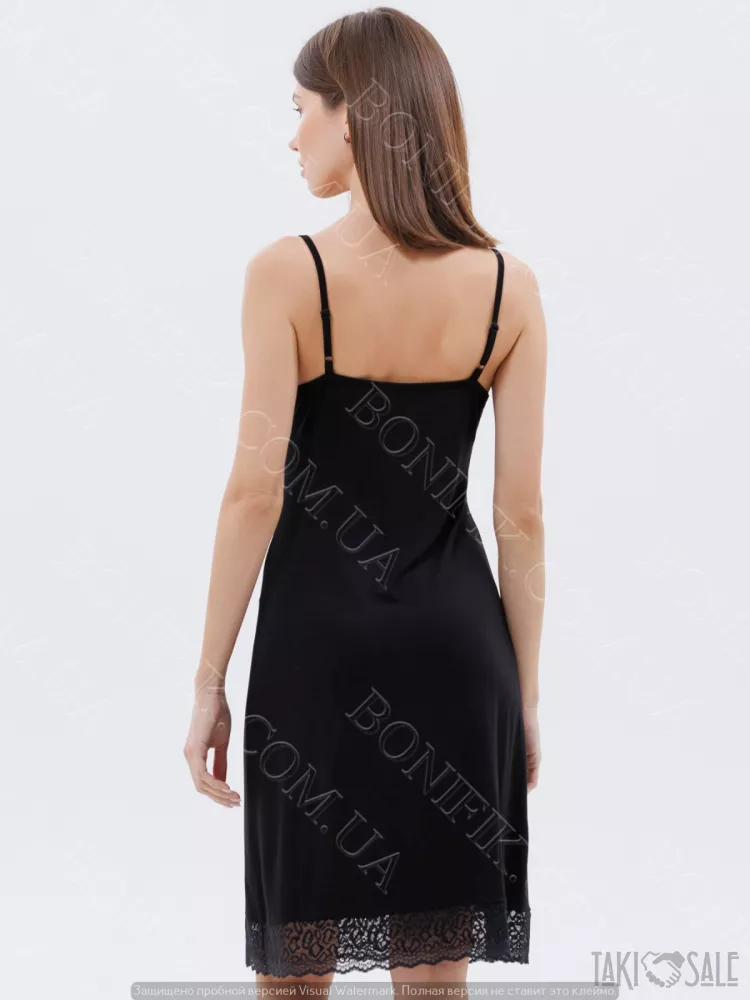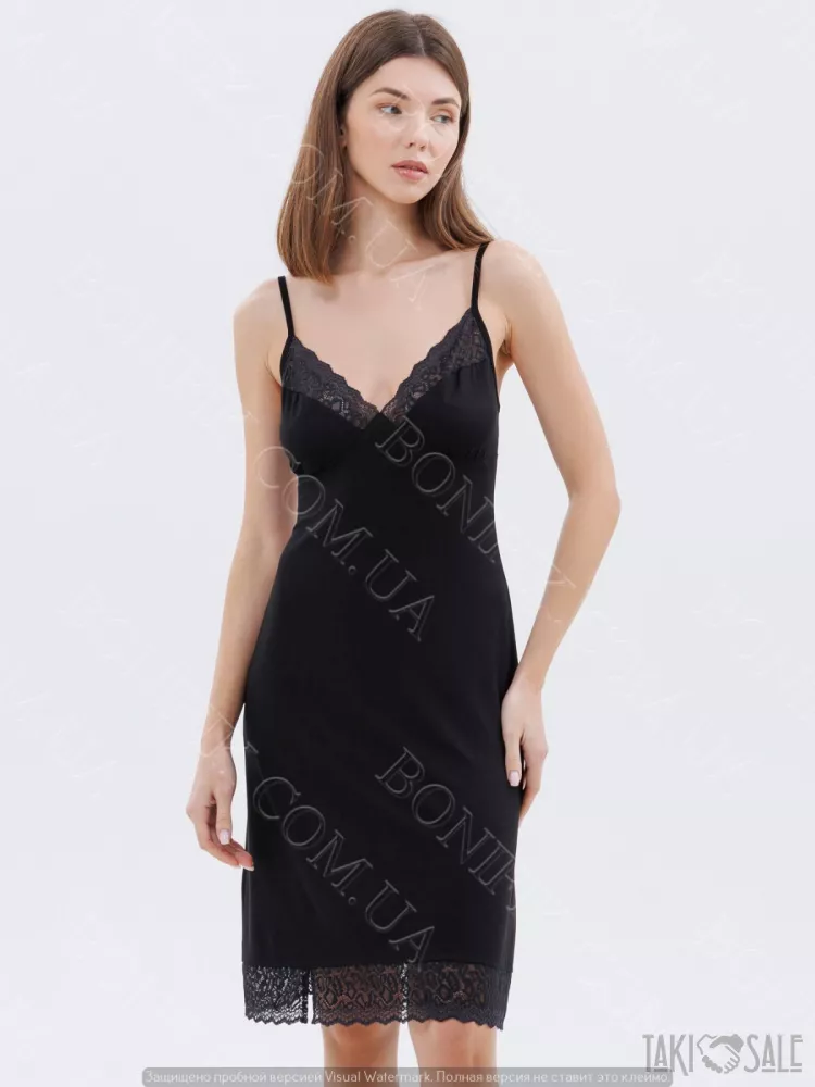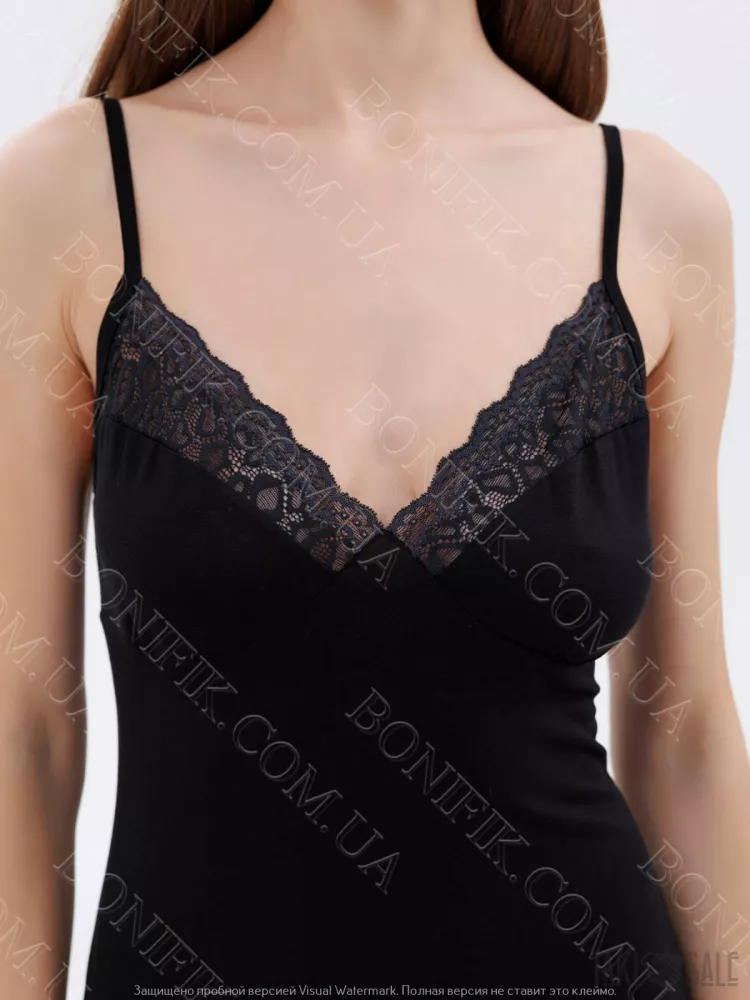 Нічна сорочка чорна з мереживом на тонких бретелях «Amour» (60047) (арт. 1348)
