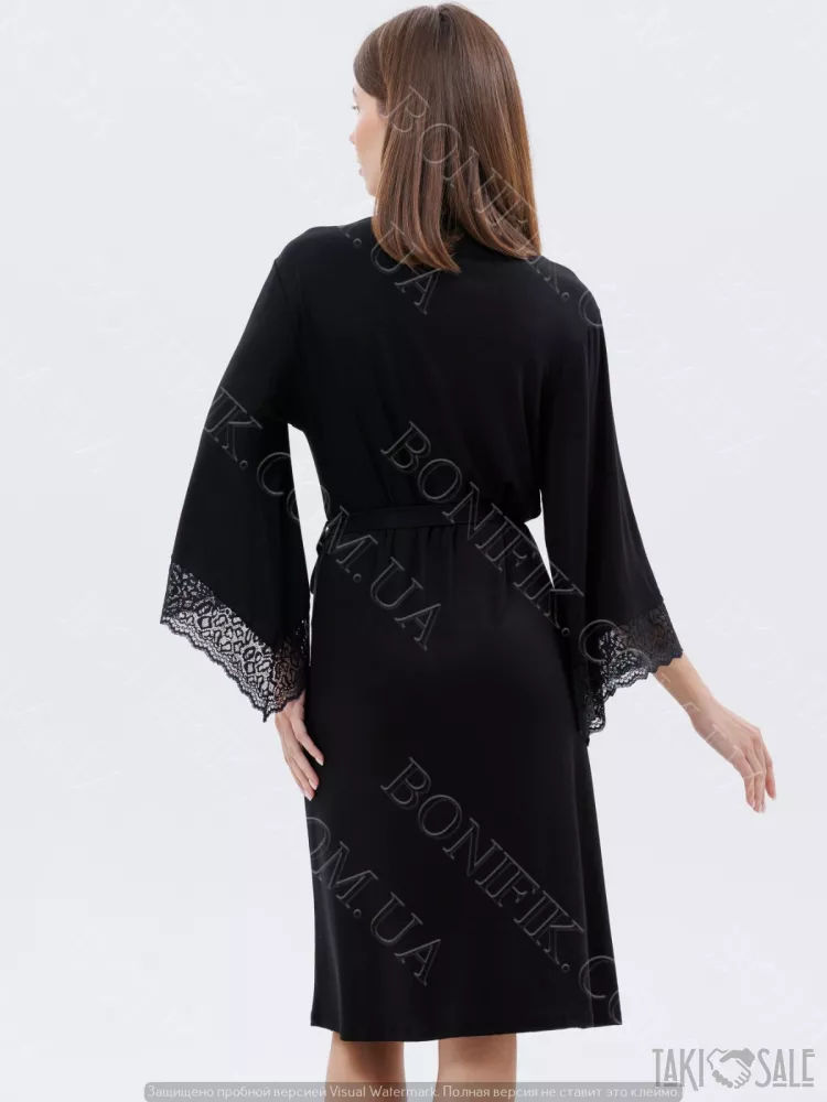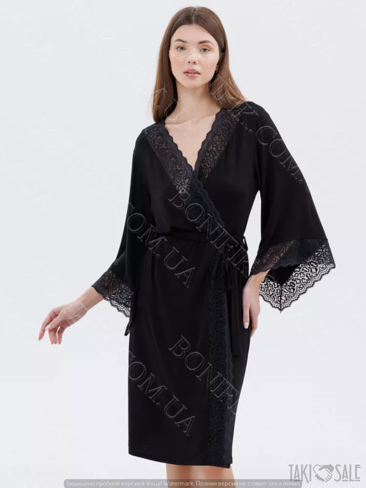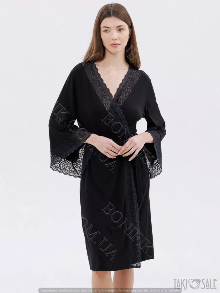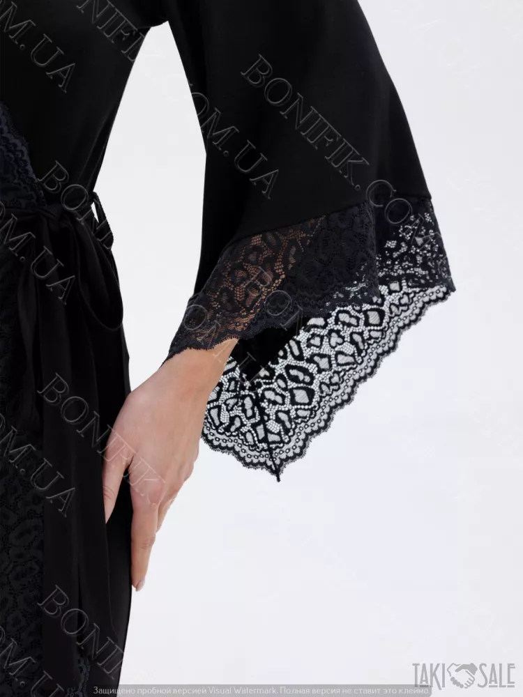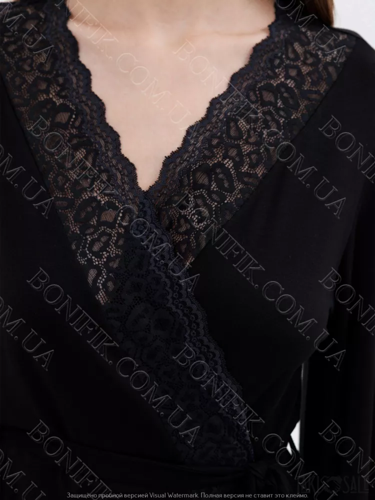 Жіночий чорний халат з мереживом «Amour» (60047) (арт. 1347)