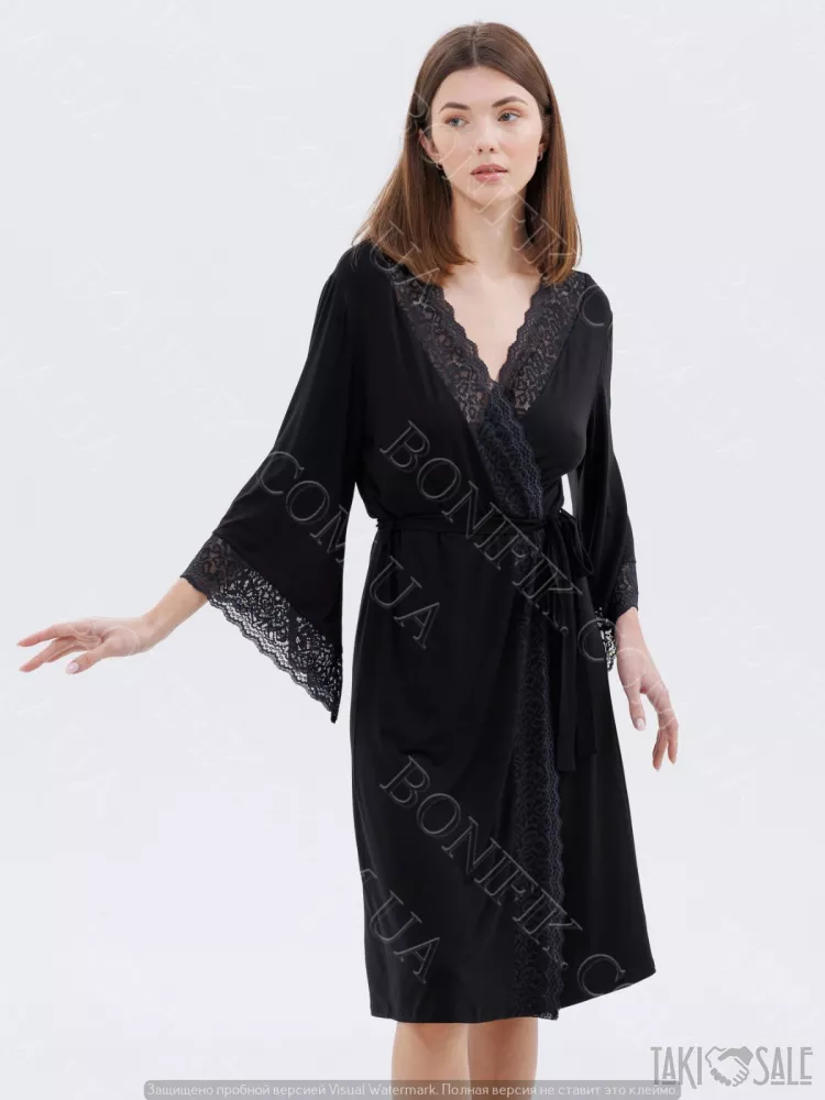 Елегантний і привабливий чорний халат — ідеальний вибір для ранкового пробудження, затишного вечора або особливого моменту.
