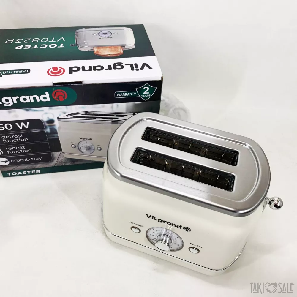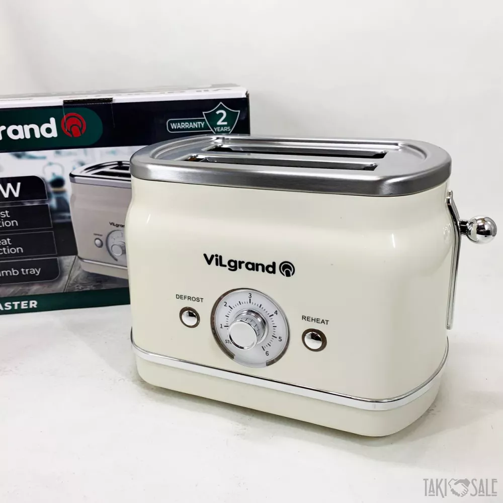 Тостер ViLgrand выполнен в элегантном винтажном дизайне, который станет стильным акцентом на вашей кухне. Тостер рассчитан на приготовление двух кусочков хлеба одновременно. Он оснащен регулятором степени прожарки с шестью уровнями, что позволяет достичь идеального результата в зависимости от ваших предпочтений.