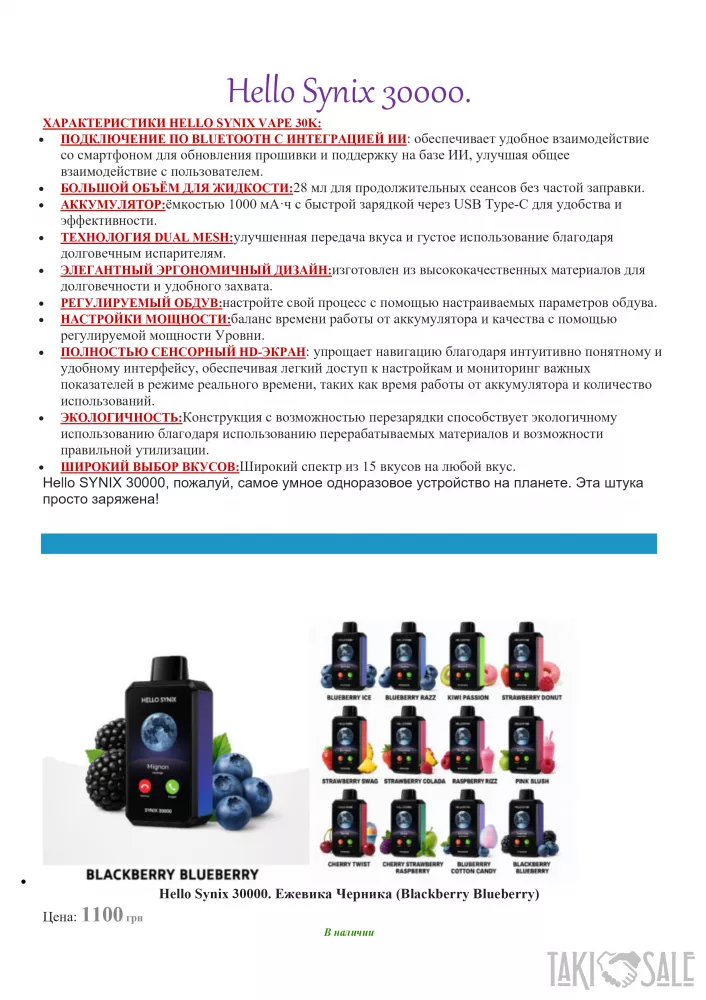 Hello SYNIX 30000, пожалуй, самое умное одноразовое устройство на планете. Эта штука просто заряжена! Вот краткий обзор его возможностей: